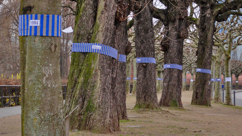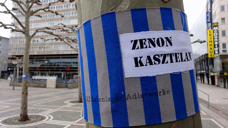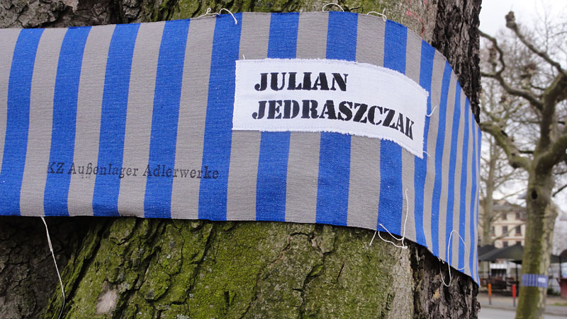 Starke Kunstaktion in Frankfurt am Main anlässlich der Vergangenheit der Adlerwerke im Stadtteil Gallus, wo unter dem Decknamen „Katzbach“ von August 1944 bis März 1945 ca. 1600 Häftlinge nach dem Prinzip „Vernichtung durch Arbeit“ interniert wurden. Eine unrühmliche Vergangeheit, die heutzutage nur den wenigsten Menschen in Frankfurt geläufig zu sein schien, so dass diese seit dem vergangenen Jahr durch mehrere Kunstaktionen im Stadtraum öffentlich gemacht wird.