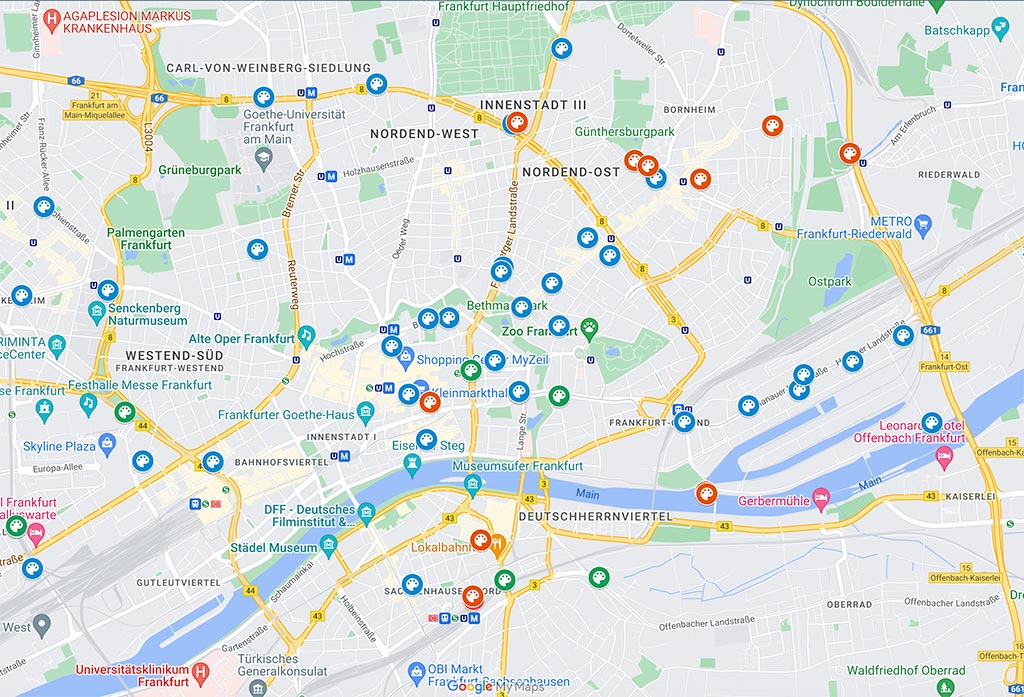 Ein Klick auf die Karte für zur Online-Ansicht der Mural-Standorte in Frankfurt beim Kartendienst „Google Maps“.