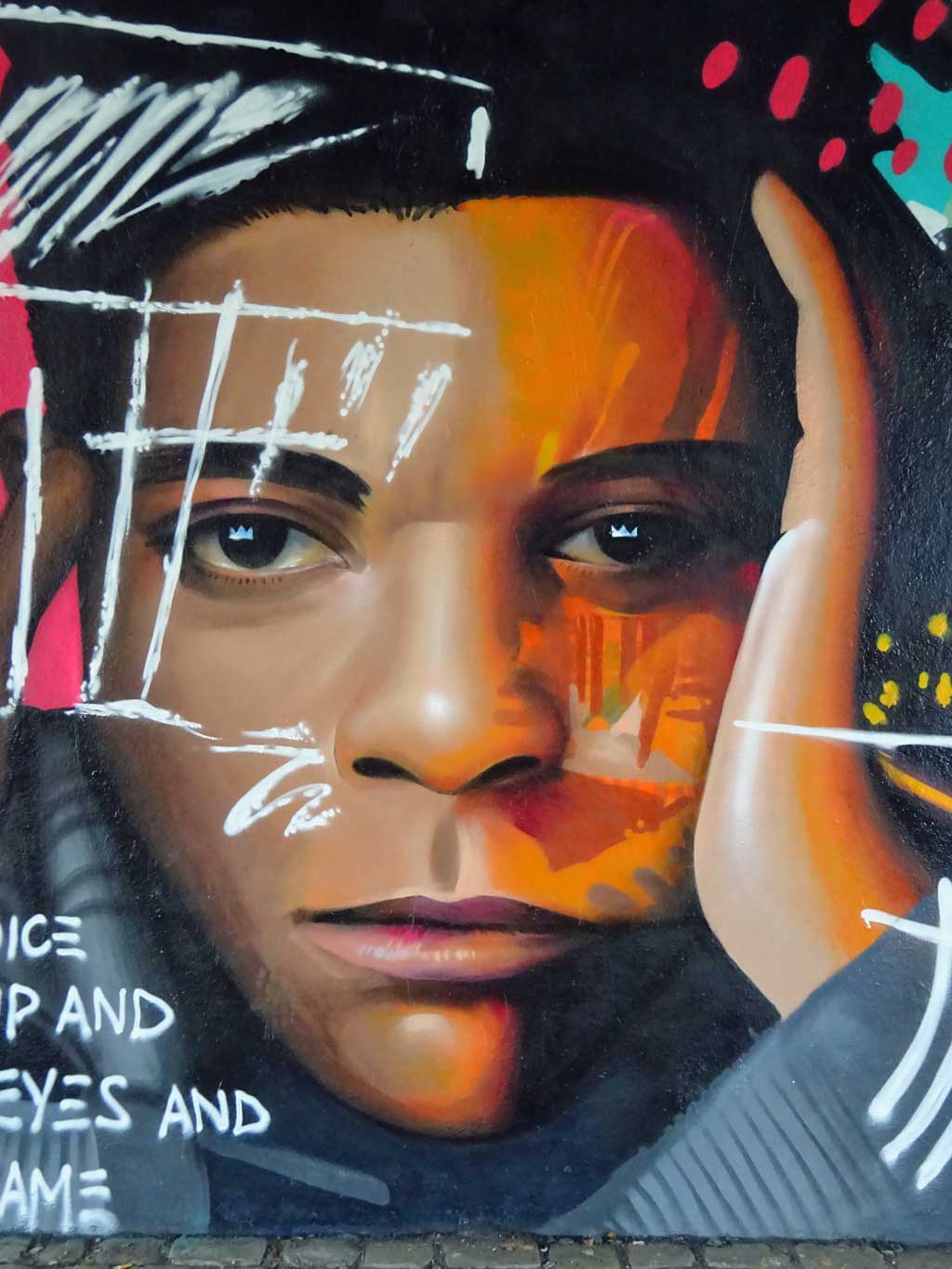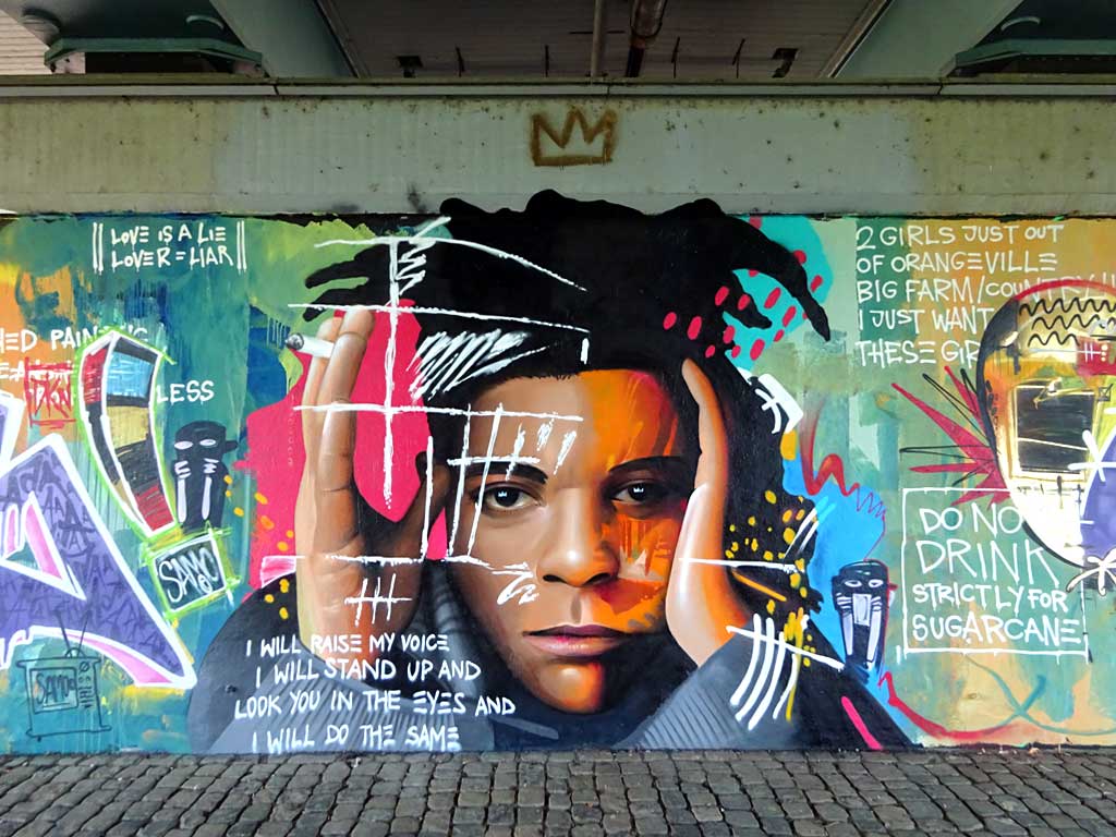 Street Art in Frankfurt – Basquiat-Mural an der Friedensbrücke.