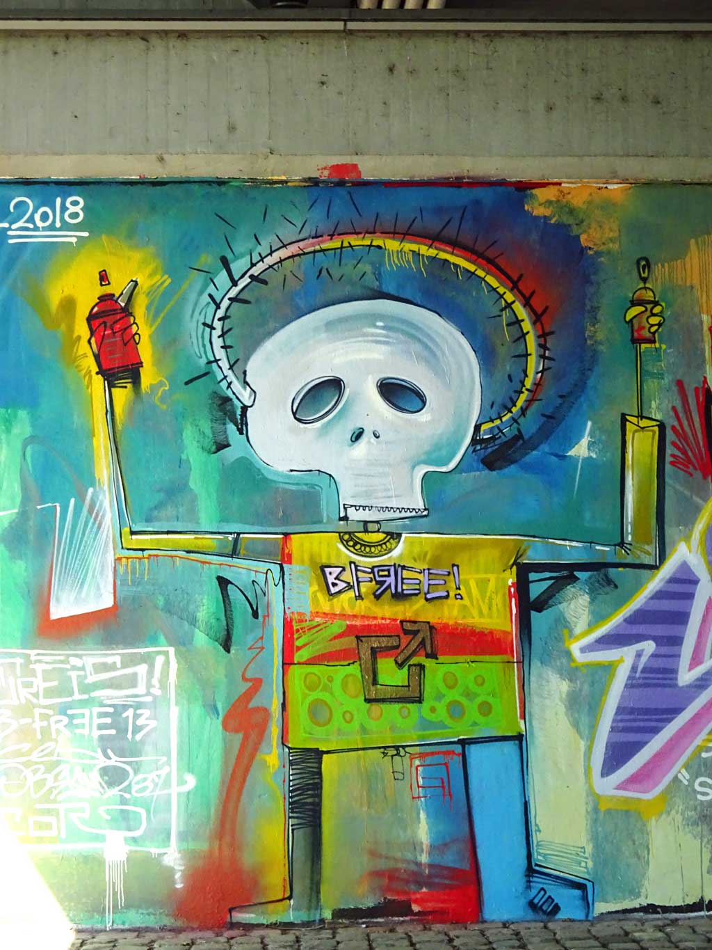 Bsquiat inspiriertes Mural an der Friedensbrücke.