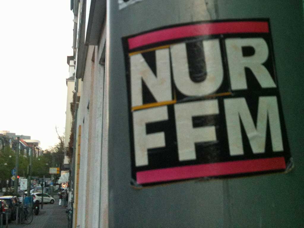 An einer U-Bahn-Station sah ich neulich einen kleinen Sticker mit dem Schriftzug RUN FFM, dann nochmals einen mit der Variante RUN BOM. Während FFM klar sein dürfte, verwundert die Abkürzung BOM für (die Facebook-Gruppe) Bornheim Mitte doch schon ein wenig. Beim Adlerblog-Spreadshirt-Shop sah ich außerdem eine Variante mit RUN SGE und im Web stieß ich zuletzt auf ein RUN VIE – für eine Veranstaltung in Wien (Vienna) mit Patrick Pulsinger und Peter Kruder. Kurios. Mal sehen, was sich künftig dazu noch entdecken lässt. Ich fahr jetzt erstmal den Rechner