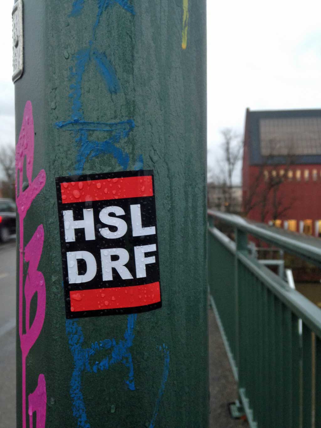 Neues zum Thema RUN-DMC-Meme: 11 Aufkleber, die in Anlehnung an das legendäre Logo der Hip-Hop-Band RUN DMC einen Namen oder eine Message in die Öffentlichkeit tragen, meistens in Form eines Aufklebers. Das originale Design – ein schwarzer Hintergrund, dazu zwei Zeilen mit je drei weißen Buchstaben, eingefasst in einem roten Balken oben und unten – wird in den Abwandlungen zwar sehr oft eingehalten, aber es gibt mttlerweile auch zahlreiche Varianten, die davon abweichen.