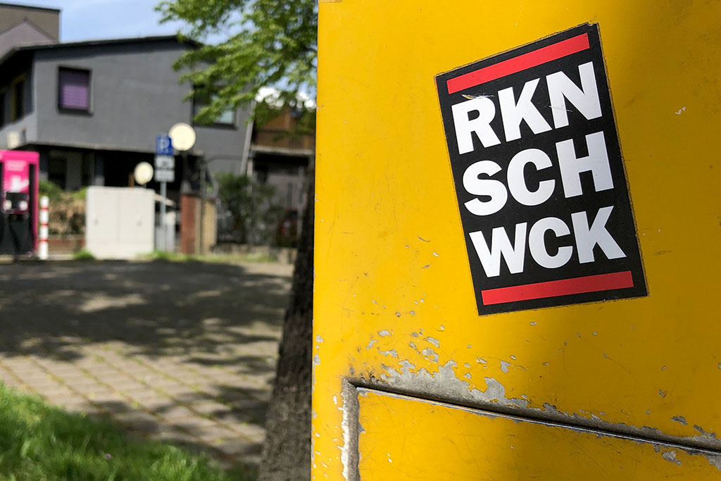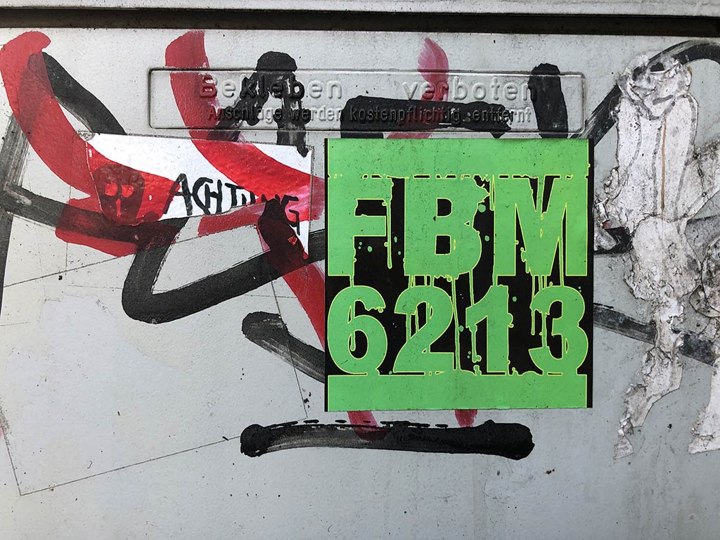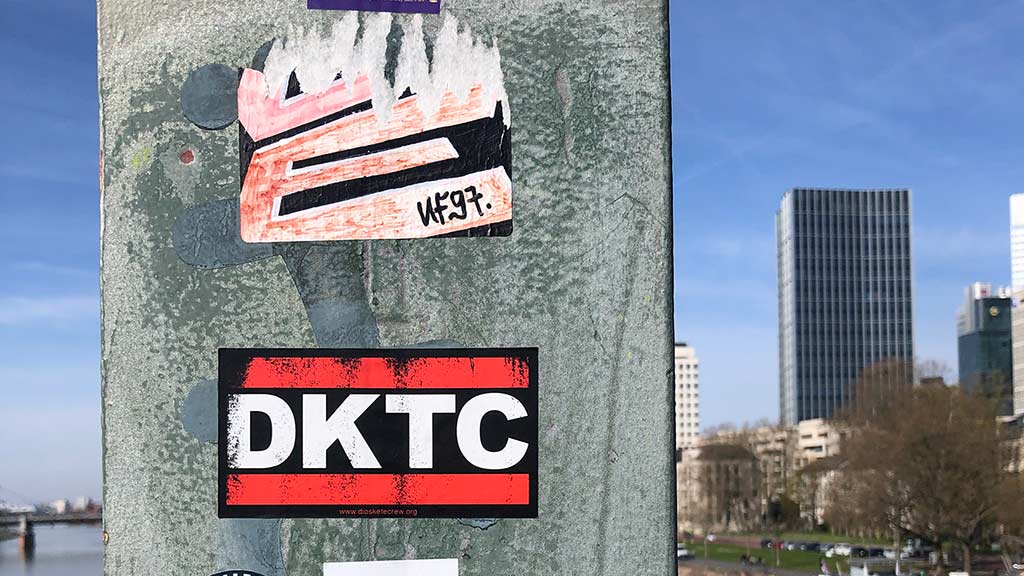 Seit 2010 immer wieder hier im Blog präsent: Abwandlungen des Logos der US-amerikanischen Rap-Crew RUN DMC, die mir in Form von Aufklebern im Frankfurter Stadtgebiet auffallen. Mittlerweile kann ich gar nicht mehr mit all den Kürzeln etwas anfangen und oder auf Anhieb dazu etwas im Internet entdecken, aber offenbar erfreut es sich weiterhin an Popularität. In diesem Sinne: Hier ein weiteres Dutzend Fundstücke, die ich in den vergangenen 12 Monaten entdeckt habe.