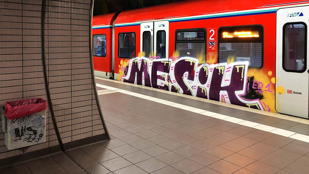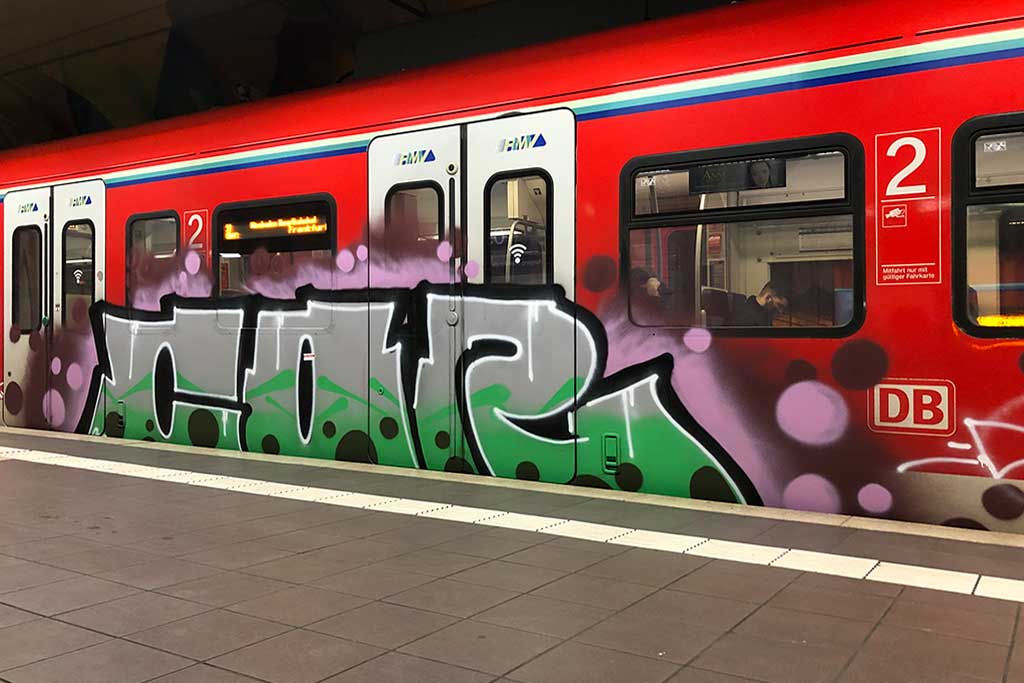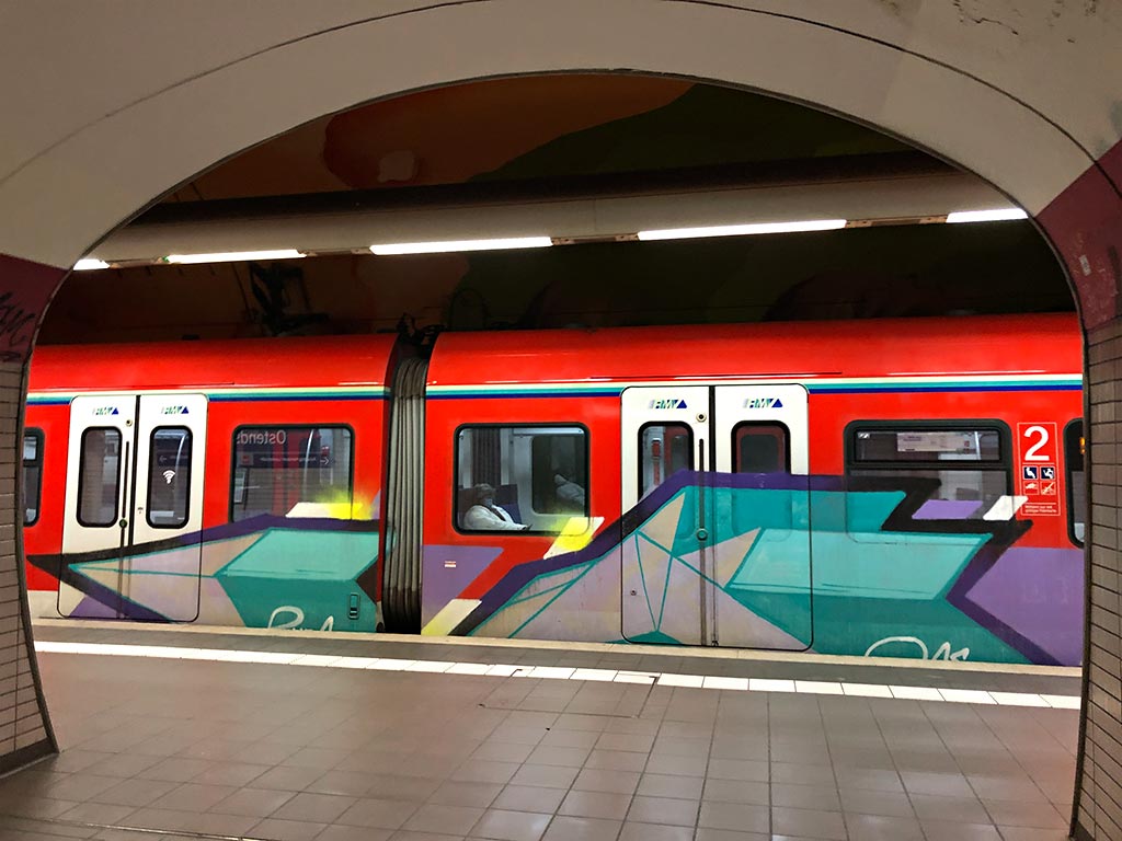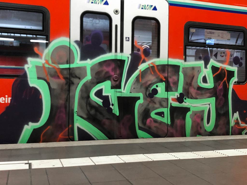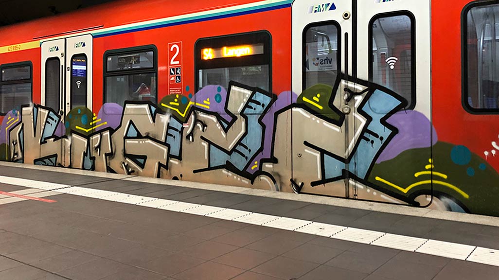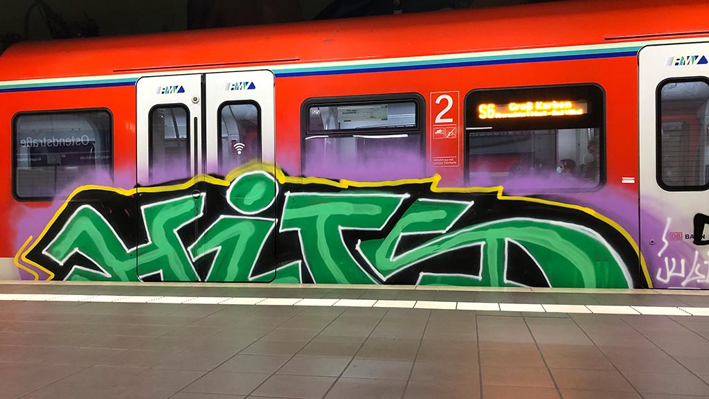 An der S-Bahn-Station Ostendstraße kann man das große Tunnel-Mural von Case und Does bewundern – oder auch auf die S-Bahnen achten, die – ob’s einem gefällt oder nicht – sogar mit bunteren und abwechselungsreicheren Gestaltungen daherkommen.