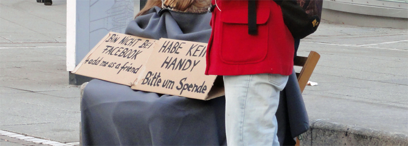 Okay, der Titel ist vermutlich etwas übertrieben, aber dennoch war es der erste Eindruck, als ich vorgestern in der Frankfurter Innenstadt plötzlich ein Grüppchen von ca. zwanzig Leuten mit typischen Facebook-Statusmeldungen an mir vorbeiziehen sah.