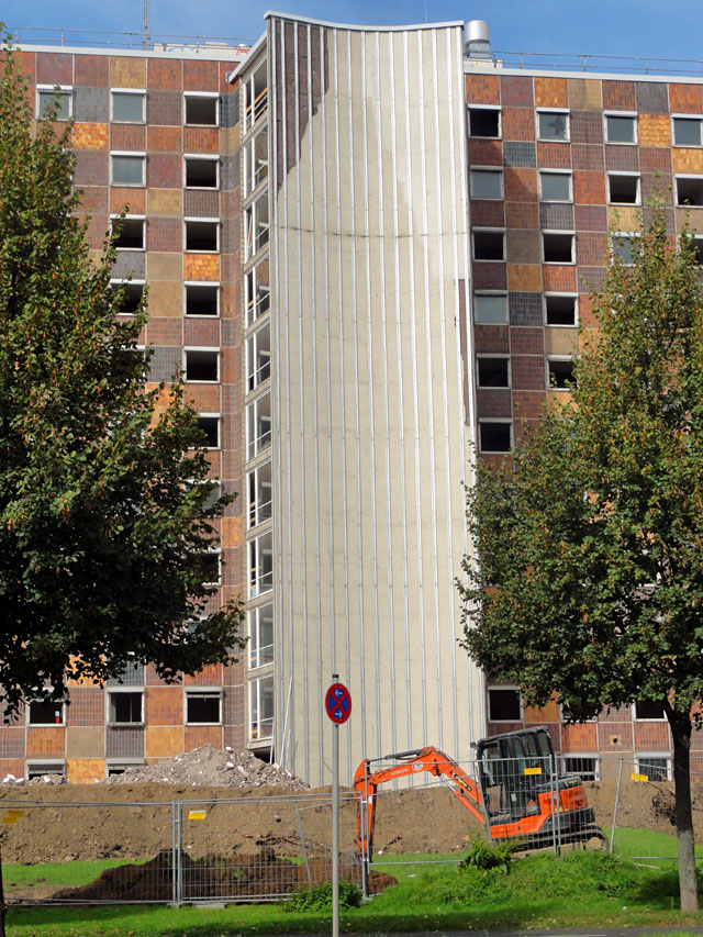 Eigentlich ist das ehemalige Verwaltungsgebäude der Oberfinanzdirektion Frankfurt am Main ein denkmalgeschützter Bürobau. Da das Gebäude jedoch mit Schastoffen belastet ist, steht es seit dem Jahr 2009 leer und wird nun sogar abgerissen.