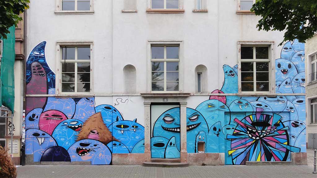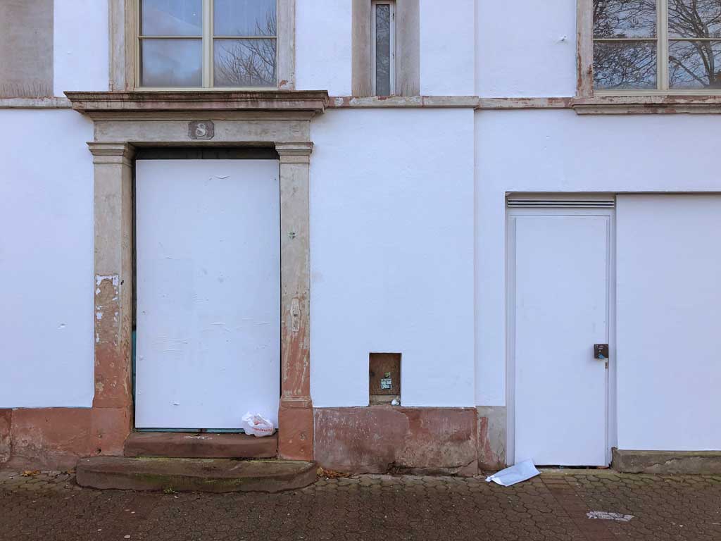 In den vergangenen Jahren wurden schon einige Artikel über die Häuser in der Berger Straße 6 und 8 geschrieben: „Schluss mit Leerstand“ (FR, 2012), „Eine Waffe gegen Geisterhäuser“ (FNP, 2018) oder auch „Muss das so aussehen? Überreifer Spätklassizismus“ (FAZ, 2019) . Vielleicht folgt bald wieder einer? Jedenfalls hat sich dort etwas getan, die Fassadengestaltung an dem Gebäude mit der Hausnummer 8 aus dem Jahre 2012 ist verschwunden. Damals bemalten der seinerzeit als »Spot« firmierende Cityghost-Macher Philipp Alexander Schäfer und Il-Jin »Atem« Choi zwei Seiten großflächig mit Graffitikunst. Das Haus ist nun komplett weiß bzw. hell, wenngleich nicht einheitlich.