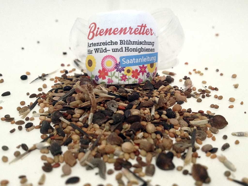 Die 50-Cent-Kapsel beinhaltet die mehrjährige Saatmischung „Lass deine Stadt aufblühen!“. Man kann sie in den Garten, auf brachliegenden Flächen oder im Blumenkübel aussäen. In der 20-Cent-Kapsel befindet sich der einjährige „Bienenfreund“ mit Kulturarten.
