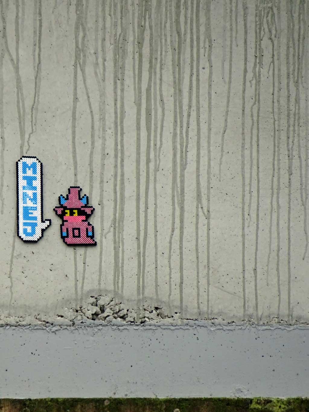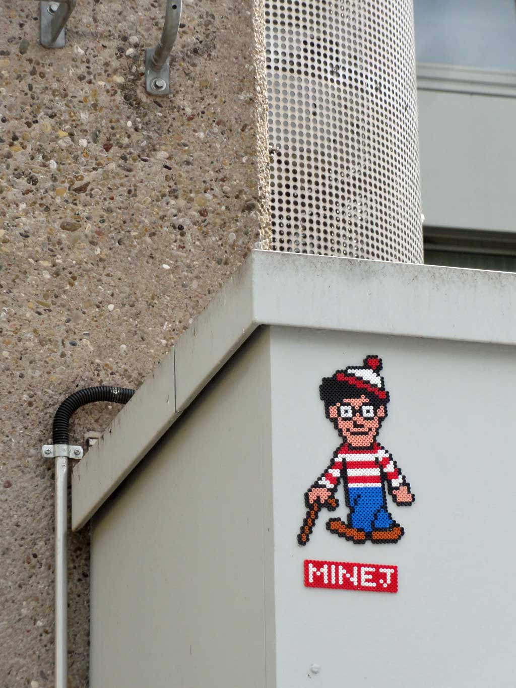 Wirklich viel tut sich in Sachen Bügelperlen-Streetart in Frankfurt nicht, aber von 2015 bis 2019 haben sich einige Fotos zu diesem Thema angesammelt, die in unterschiedlicher Gestaltung das Wort MINEJ zeigen. In wenigen Fällen ist das MINEJ durch sehenswerte, größere Bügelperlen-Figuren ergänzt, wie z.B. Michelangelo aus dem Comic „Teenage Mutant Ninja Turtle“ oder der aus „Masters of the Universe“ bekannte Orko.