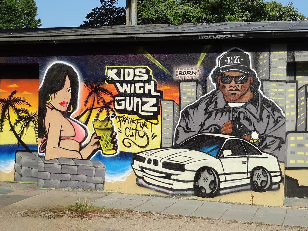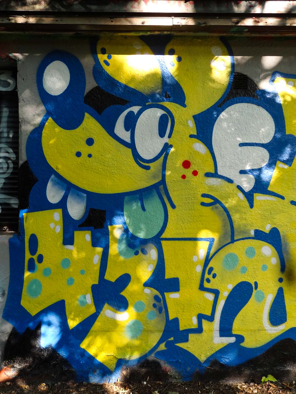 Der Evangelische Verein für Jugendsozialarbeit in Frankfurt am Main betreibt an seinem Standort im Stadtteil Nieder-Eschbach das Jugendhaus am Bügel, das Kinderhaus am Bügel und den Mädchentreff am Bügel. Außerhalb der regelmäßigen Angebotsstruktur finden dort auch immer wieder größere Events statt, z. B. die Character Jam. Zu diesem Anlass finden sich vor Ort zahlreiche Maler*innen ein, um die ebenso zahlreich vorhandenen Wände auf dem Areal mit Urban Art künstlerisch zu gestalten. Der offizielle Schwerpunkt liegt dabei weniger beim klassischen Stylewriting, sondern in der Darstellung von Charactern. Neben Künstler*innen, von denen man in Stadt und Region immer wieder etwas mitbekommt, war in diesem Jahr auch Hera (von Herakut) mit von der Partie.