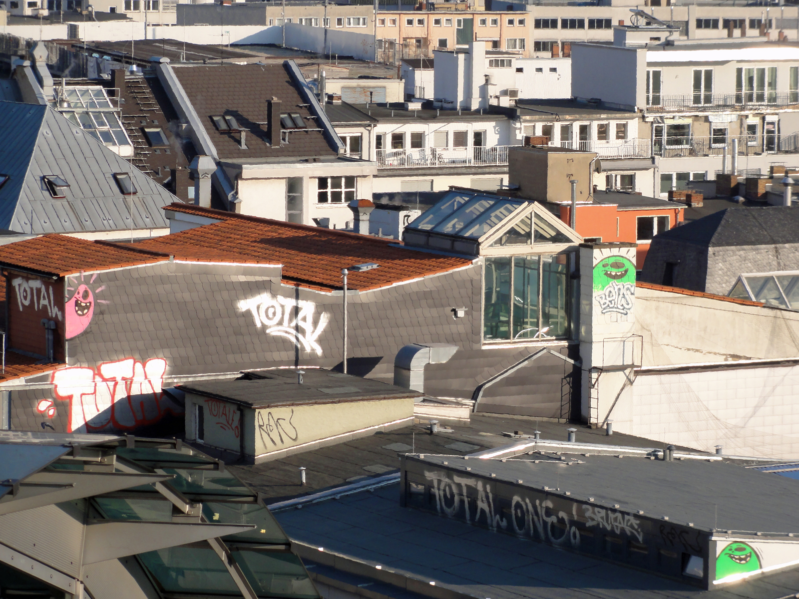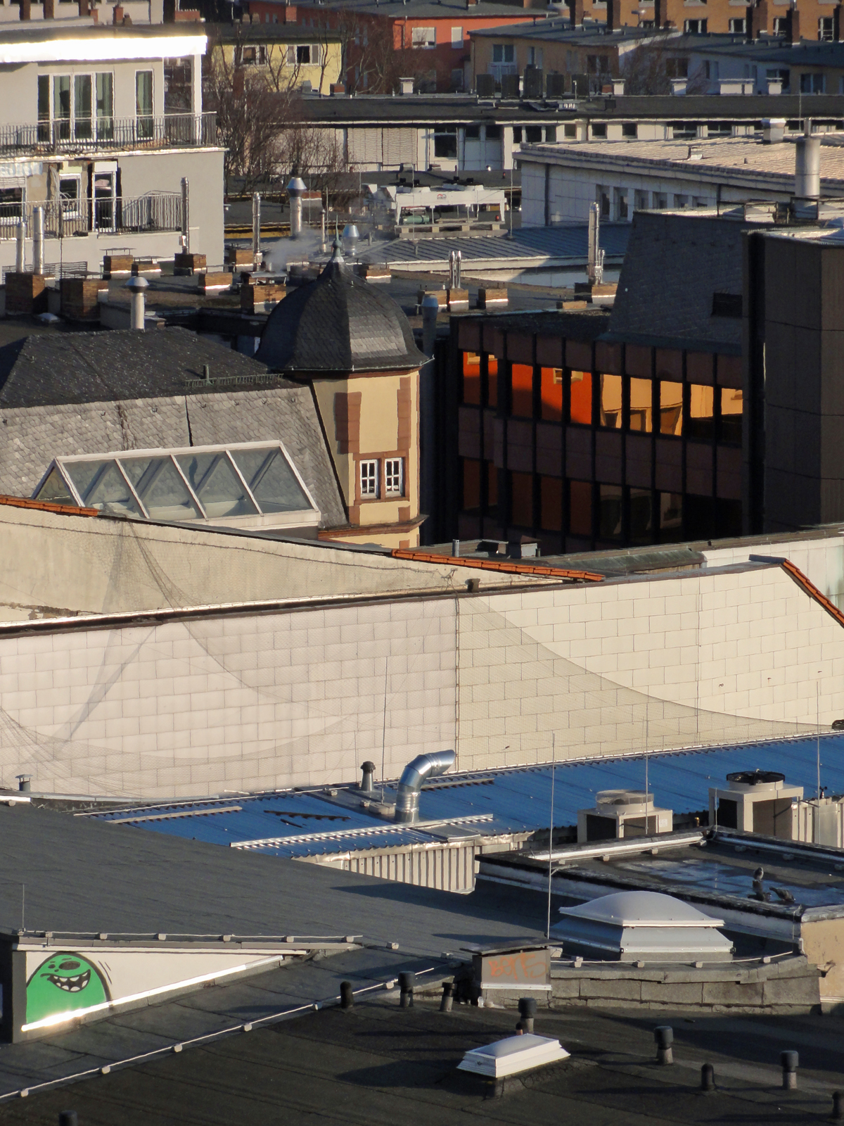 Neues und aktuelles von Spot und seinen Cityghosts. Rooftop-Action in der Innenstadt, eine Handvoll Sticker und mit den Worten Rotschilds am östlichen Mainufer, Nähe EZB.
