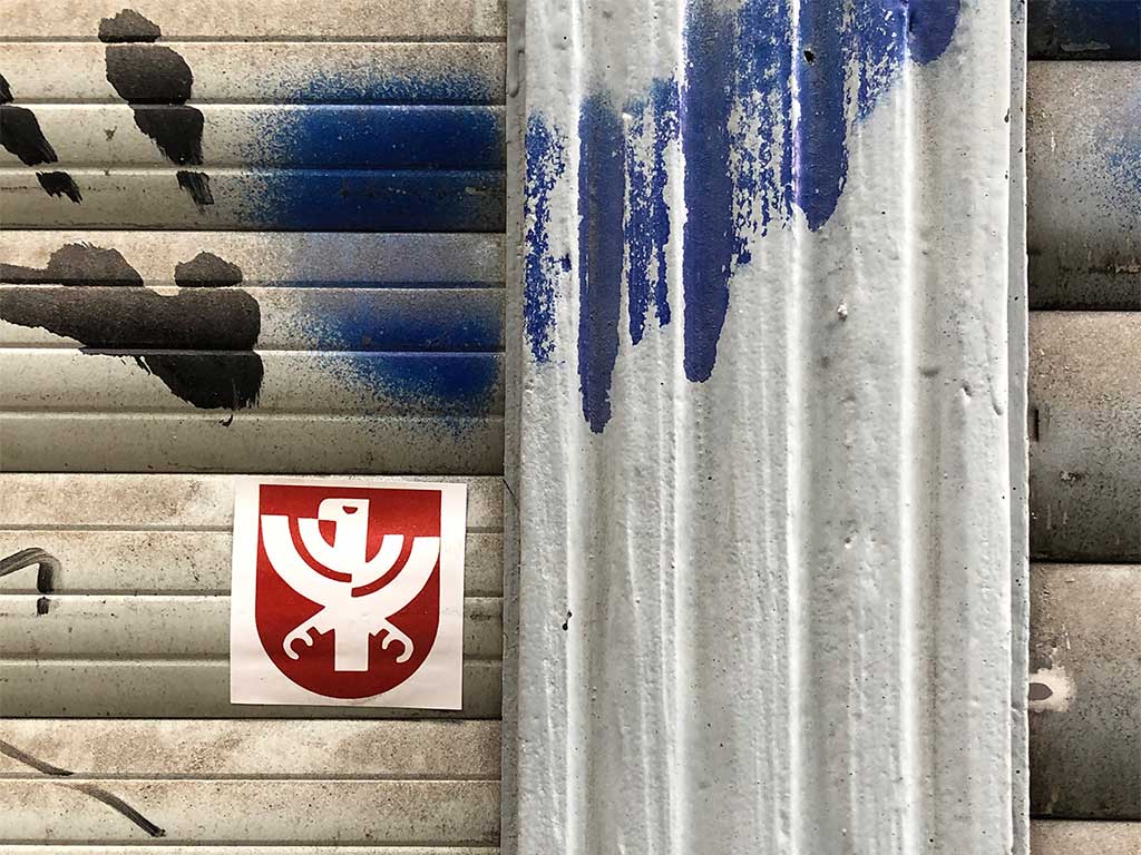 Ich hätte noch ein Dutzend Fotos von Aufklebern mit dem Leistikow-Adler, der, im Original wie auch in abgewandelter Form, mittlerweile immer öfter von Fans der Männermannschaft des Fußball-Bundesligisten Eintracht Frankfurt verwendet wird, obwohl diese, überwiegend gar nicht aus Frankfurt stammend, doch so gerne auf – eine wie auch immer definierte – „Tradition“ setzten. Wie passt das zu einem Symbol aus der Moderne? Eben, gar nicht. Deswegen gibt’s hier auch keine Bilder dazu.