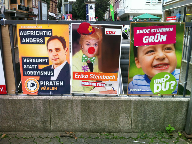 …und neben den ersten runtergerissenen Plakaten, z.B. im Ostend, sind an anderer Stelle auch schon die ersten „Finetunings“ zu entdecken. Ansonsten ist es schon recht grausam zu sehen wie viele Plakate, auf zum Teil engsten Raum, das Stadtbild quasi über Nacht verändert haben.