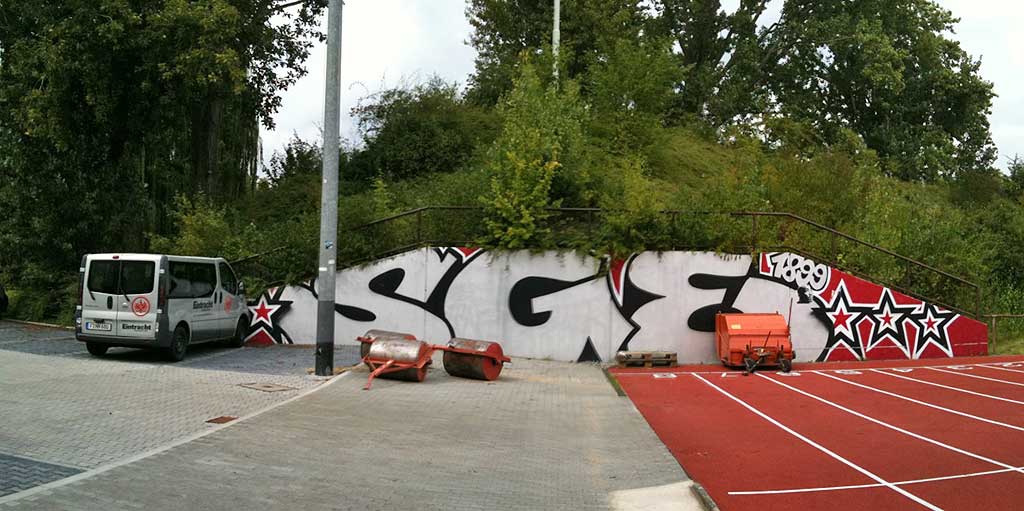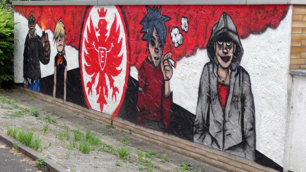 Die Sichtbarkeit Eintracht Frankfurts ist nicht nur durch die zahlreichen Aufkleber, Tags und Graffiti in den Straßen gegeben. Hin und wieder gibt es auch öffentlichkeitswirksame Aktionen, wie den T-Rex im Eintracht-Trikot, Bahn- und Haltestellen-Gestaltungen der Partner im ÖPNV und größere wie auch kleinere künstlerische Gestaltungen an Hausfassaden.