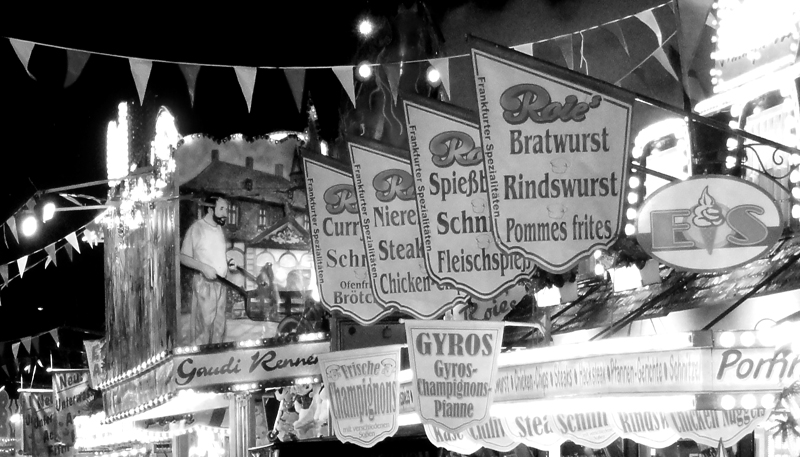 Beim kürzlich erfolgten Besuch des Festplatzes am Ratsweg habe ich, wie eigentlich immer bei Dunkelheit, mit meiner Kompakt-Digicam die Bilder ziemlich verkackt – egal ob mit oder ohne Blitz, Nachtmodus on oder off. Was macht man also mit Fotos, die qualitativ eher suboptimal ausgefallen sind? Richtig, in schwarzweiß konvertieren. Zugegeben: Die knallbunte Dippemesswelt in monochrom zu betrachten ist ja schon etwas ungewohnt, aber nun ja…