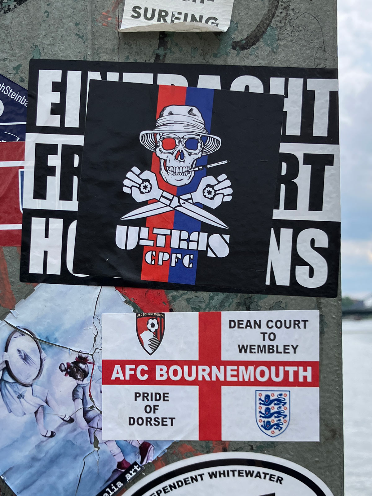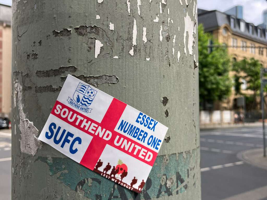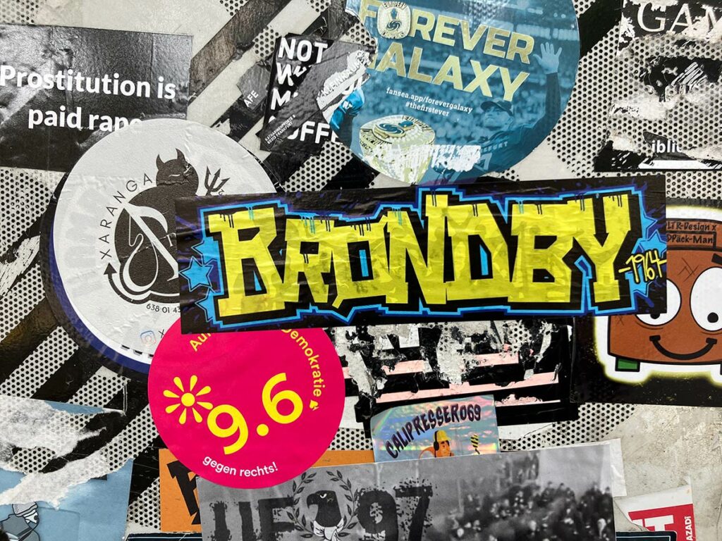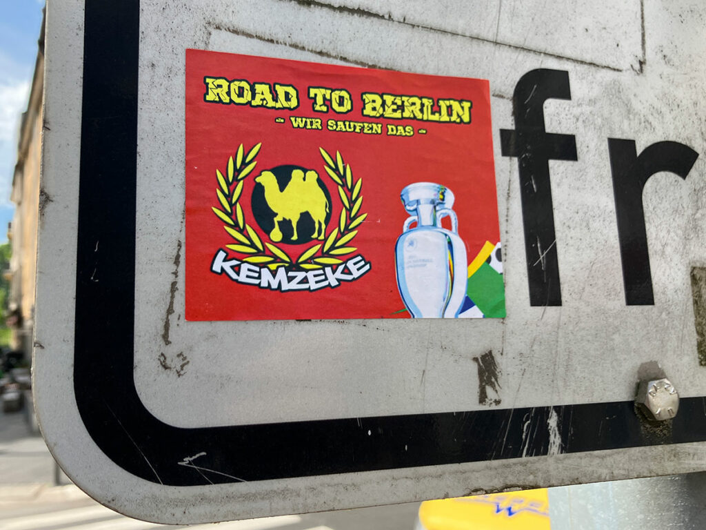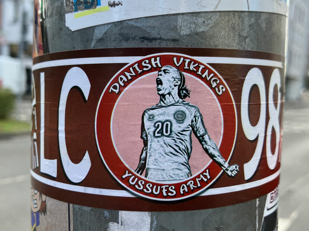 Wenn Fußballfans ihre Mannschaften bei Auswärtsspielen unterstützen, hinterlassen sie in der Regel auch eine Menge Aufkleber – meistens in der Kurve im Stadion, aber auch im Stadtgebiet. In Frankfurt am Main ist das besonders oft in der Altstadt und im Bahnhofsviertel der Fall, wo ich auch anlässlich der zur Zeit stattfindenden EURO 2024 fündig geworden bin. Besonders viele entdeckt habe ich von Anhänger*innen aus England und Dänemark, darunter nicht nur Sticker ihrer Lieblingsvereine, sondern auch welche, die mit Landesflaggenmotiven gestaltet sind. Eine Handvoll Aufkleber habe ich außerdem auch noch von Belgien, Polen, Rumänien und der Schweiz entdeckt, Einzelstücke von Frankreich, Schottland, Slowakei, Slowenien und Ungarn.