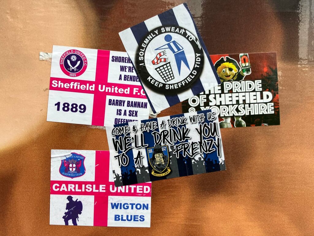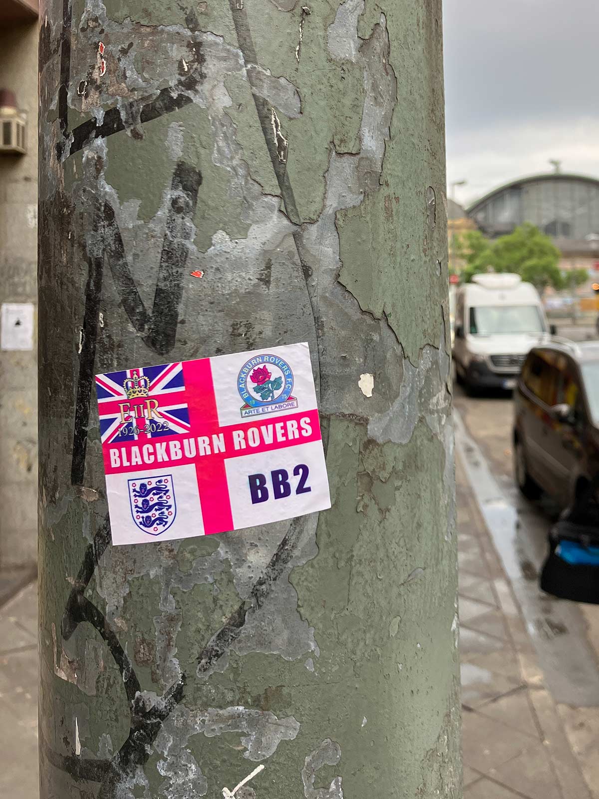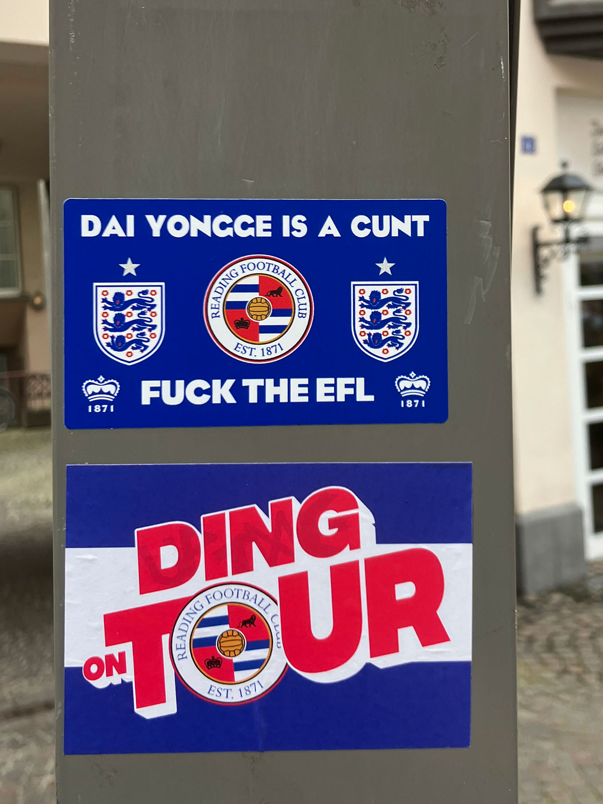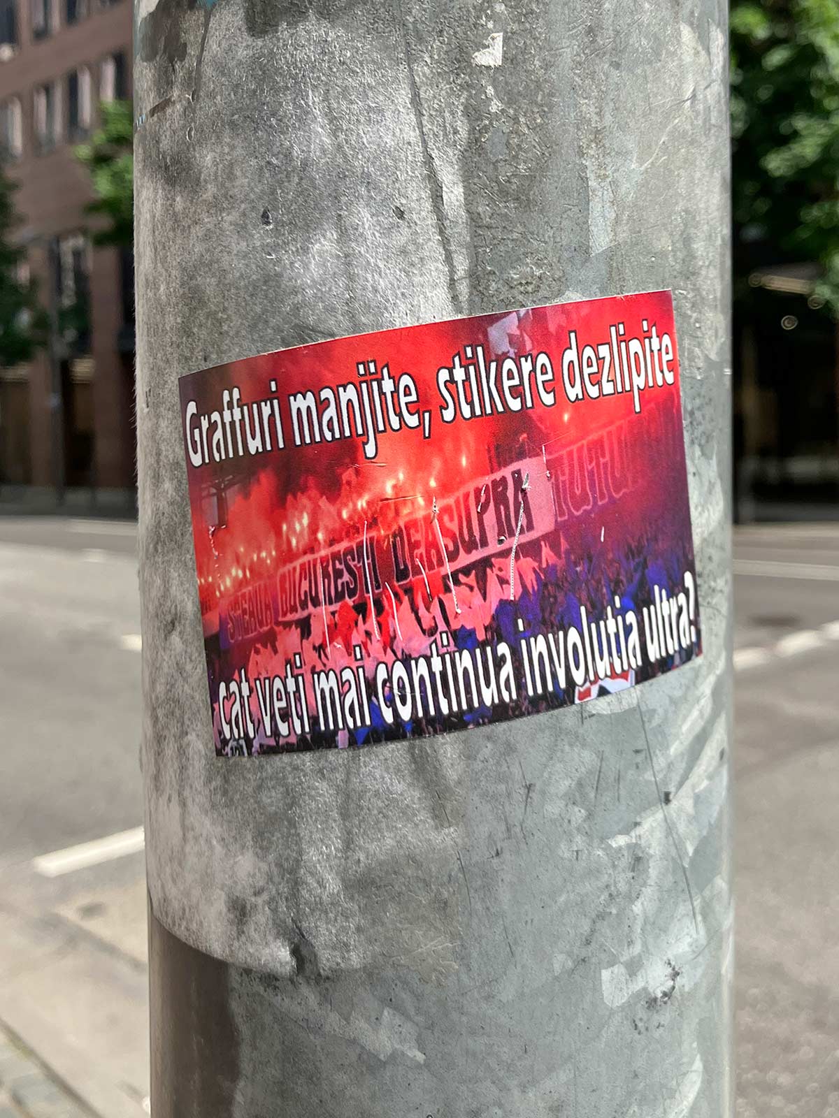 Wenn Fußballfans ihre Mannschaften bei Auswärtsspielen unterstützen, hinterlassen sie in der Regel auch eine Menge Aufkleber – meistens in der Kurve im Stadion, aber auch im Stadtgebiet. In Frankfurt am Main ist das besonders oft in der Altstadt und im Bahnhofsviertel der Fall, wo ich auch anlässlich der zur Zeit stattfindenden EURO 2024 fündig geworden bin. Besonders viele entdeckt habe ich von Anhänger*innen aus England und Dänemark, darunter nicht nur Sticker ihrer Lieblingsvereine, sondern auch welche, die mit Landesflaggenmotiven gestaltet sind. Eine Handvoll Aufkleber habe ich außerdem auch noch von Belgien, Polen, Rumänien und der Schweiz entdeckt, Einzelstücke von Frankreich, Schottland, Slowakei, Slowenien und Ungarn.