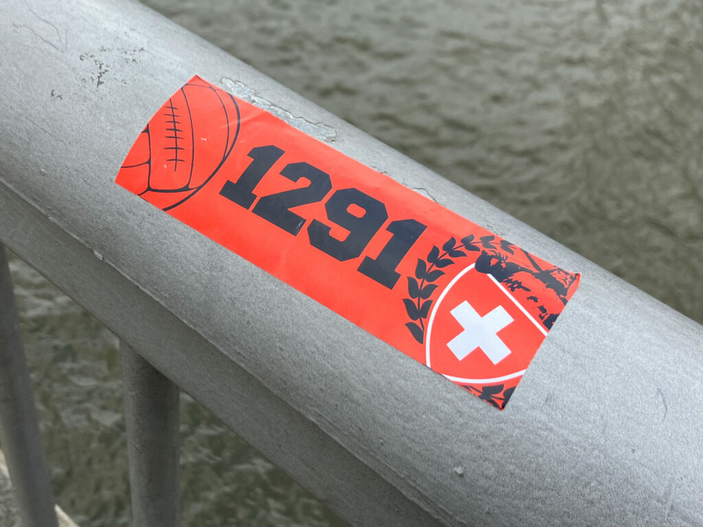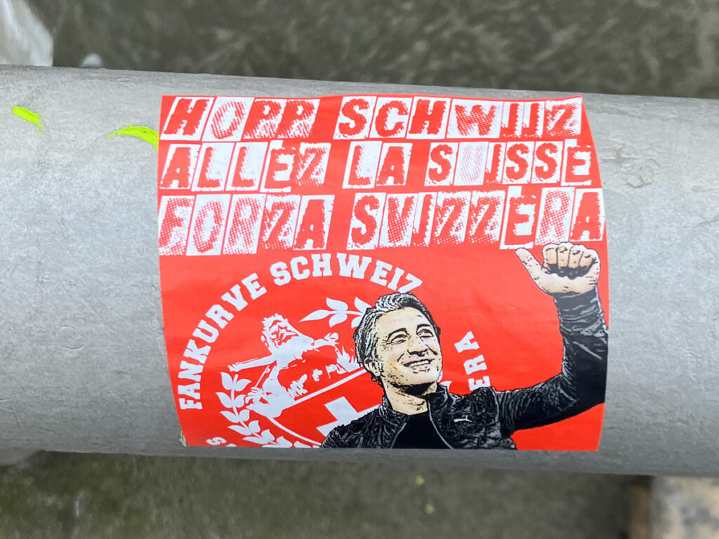 Schweiz-Aufkleber zur EURO 2024 in Frankfurt