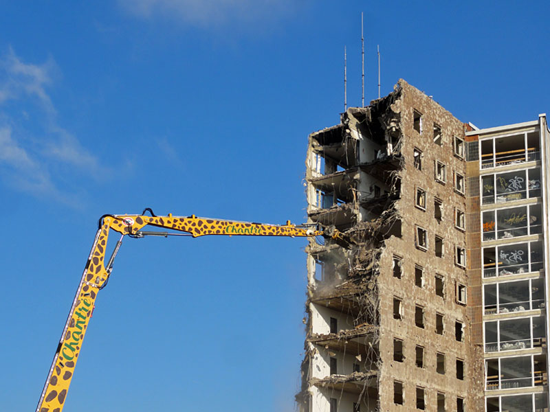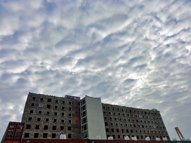 Der November ging wohl primär dafür drauf, die kontaminierten Platten der Fassade zu entfernen, während im Dezember fleissig am Gebäude geknabbert wird und bereits ein gutes Stück der ehemaligen Oberfinanzdirektion dem Erboden gleichgemacht wurde.