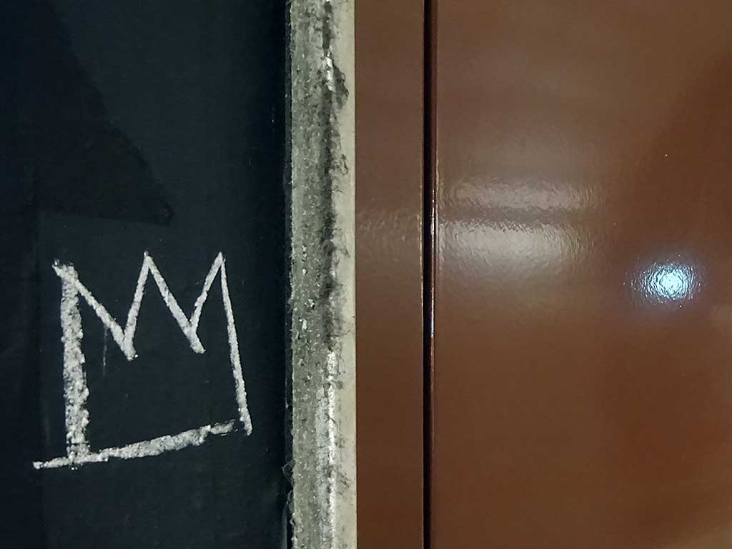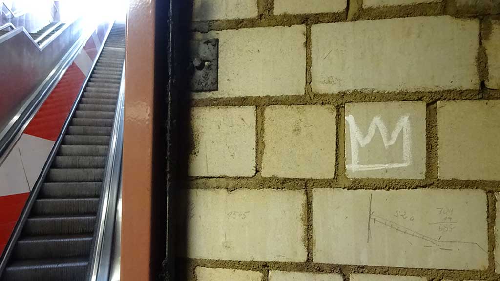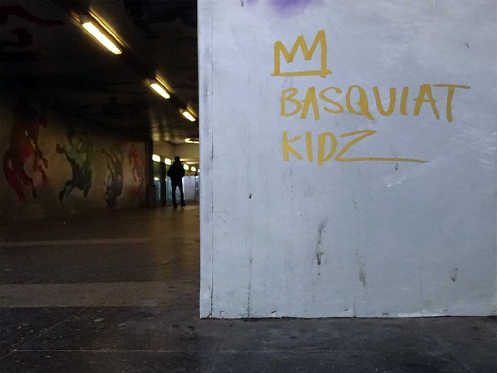 Fotos mit Kronen, die in ihrer Art an den Künstler Jean-Michel Basquiat erinnern, hatte ich hier im Blog schon vor einigen Wochen veröffentlicht, aber da ich in der Zwischenzeit noch weitere Exemplare entdeckt habe, darunter auch einige, die mit „Basquiat Kidz“ oder „Speak Love“ versehen sind, soll es an dieser Stelle ein weiteres Mal Fotos davon geben.