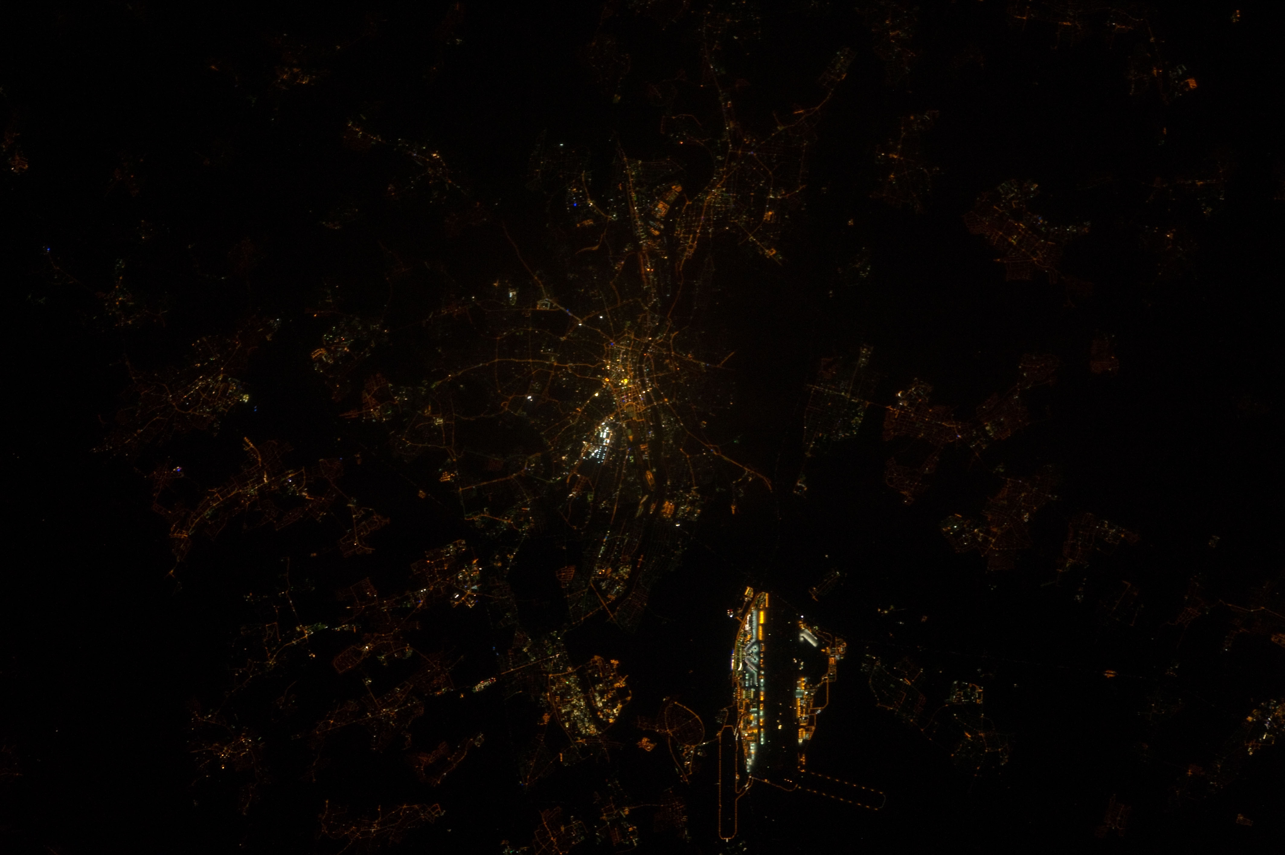 Fotos von Frankfurt gibt es wie Sand am Meer, auch aus erhöhter Position, wie z.B. aus einem Hochhaus oder Flugzeug heraus fotografiert. Bei Aufnahmen aus dem Weltall dürfte die Auswahl allerdings etwas überschaubarer ausfallen. Die nachfolgende Aufnahme entstand an Bord der ISS, der internationalen Raumstation, die im Durchschnitt 400km über der Erde ihre Kreise zieht.