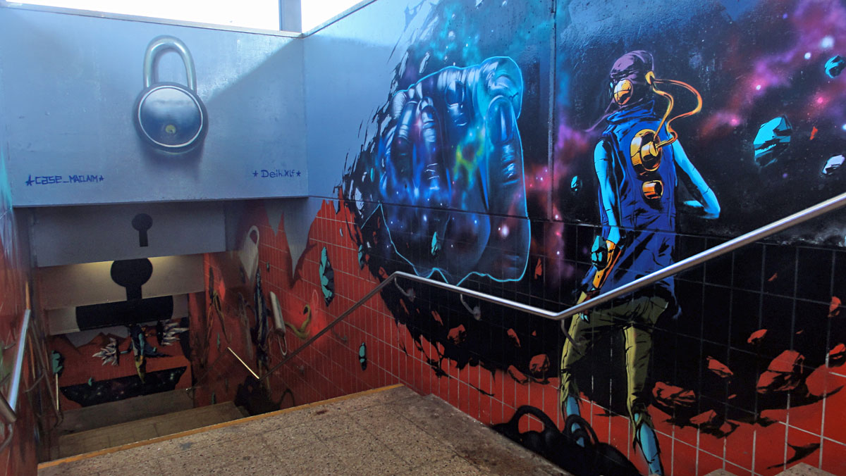 Der Graffiti-Künstler Case, auch bekannt als Andreas von Chrzanowski, war Gründungsmitglied der bekannten Ma’Claim-Crew und malt mittlerweile seit über zwei Jahrzehnten. Zudem gilt er als Pionier im Bereich des Photorealistic Graffiti und bemalte während der mehrwöchigen Tunnelsperrung in Frankfurt zuletzt eine Fläche von mehr als 6.000m² in der S-Bahn-Station Ostendstraße („Laufende Hände“-Graffiti). Ebenfalls seit mindestens zwei Jahrzehnten malt der Graffiti-Künstler Deih. Gemeinsam haben sie in Frankfurt zwei Treppenbereiche in der S-Bahn-Station Galluswarte neu gestaltet.
