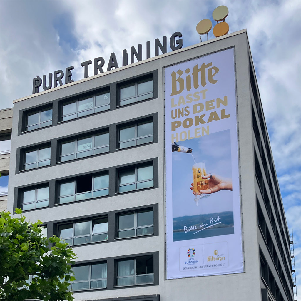 Werbemaßnahmen in Form von Plakaten an Wänden und Litfasssäulen sind natürlich auch allerorts zu sehen. Gelungen finde ich das zu „Food Bowl’s coming home“ umgewandete „Football’s coming home“, wenngleich das „home“ des Original-Slogans natürlich England meint, und nicht Deutschland, wo die diesjährige EM stattfindet.