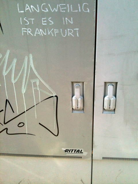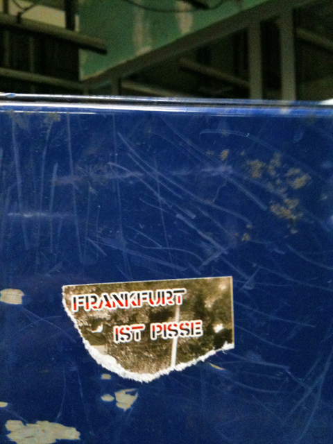 Es soll ja Menschen geben, die einem „Es will mer net in de Kopp enei, wie kann nor e Mensch net von Frankfort sei!“ nicht so viel abgewinnen können. Was bei einer Transitstadt wie Frankfurt, wo die Leute kommen und gehen, vielleicht auch gar nicht so verwunderlich ist. Anbei zwei Fundstücke, die eine Abneigung zu Frankfurt kundtun.