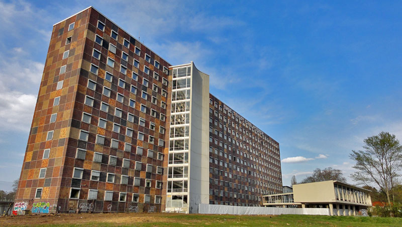 Das Gebäude der ehemaligen Oberfinanzdirektion an der Adickesallee im Frankfurter Nordend ist seit einigen Wochen komplett abgerissen. Anbei zwei Fotos, zwischen denen genau ein Jahr liegt, aufgenommen im März 2014 und März 2015.