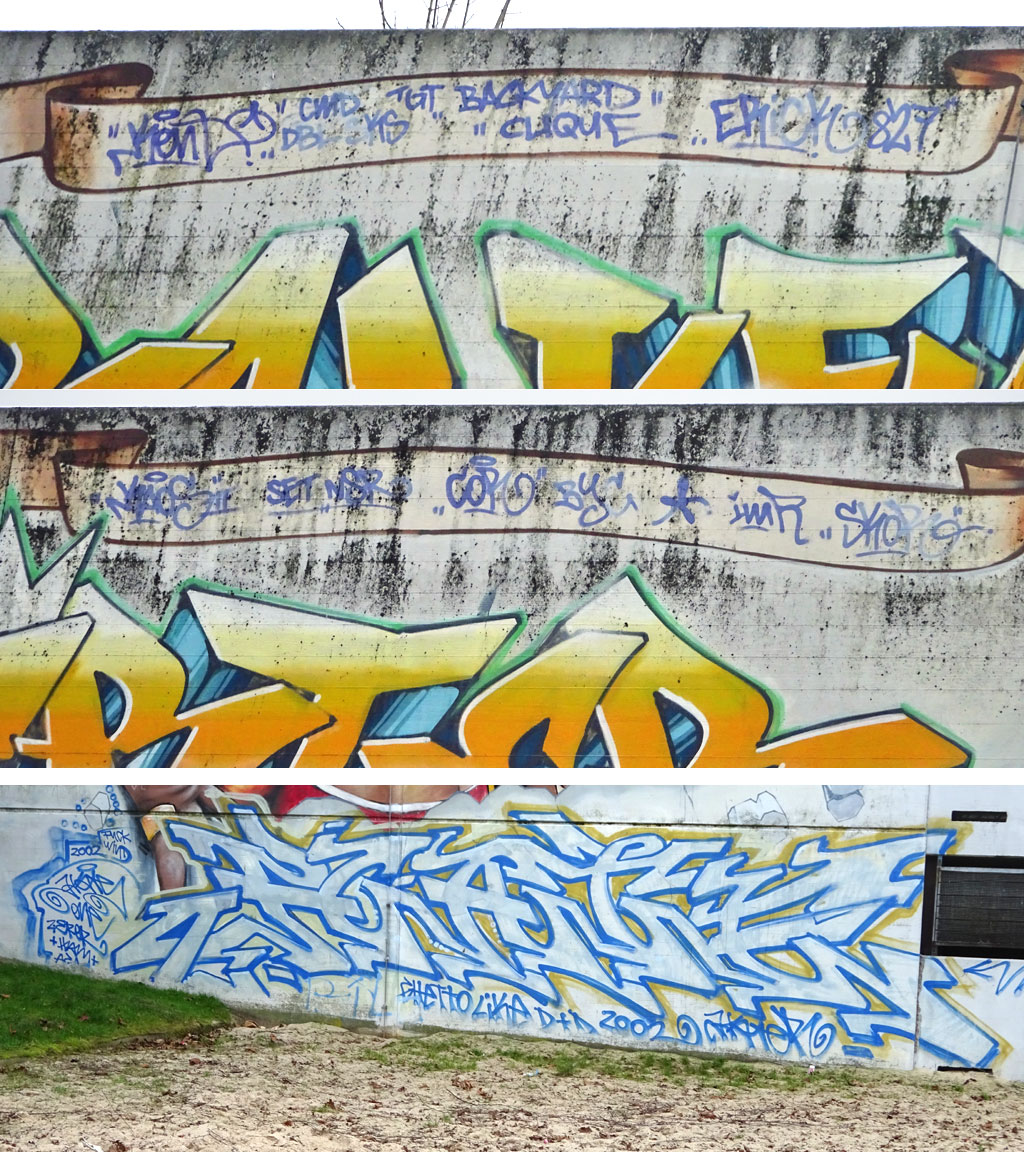 Dürfte zusammen mit dem großformatigen Wandbild an der Sophienschule in Bockenheim und dem beim Jugendzentrum im Nordend zu den ältesten noch sichtbaren Werken dieser Art in Frankfurt am Main gehören: Das Frankfurter-Berg-Mural.