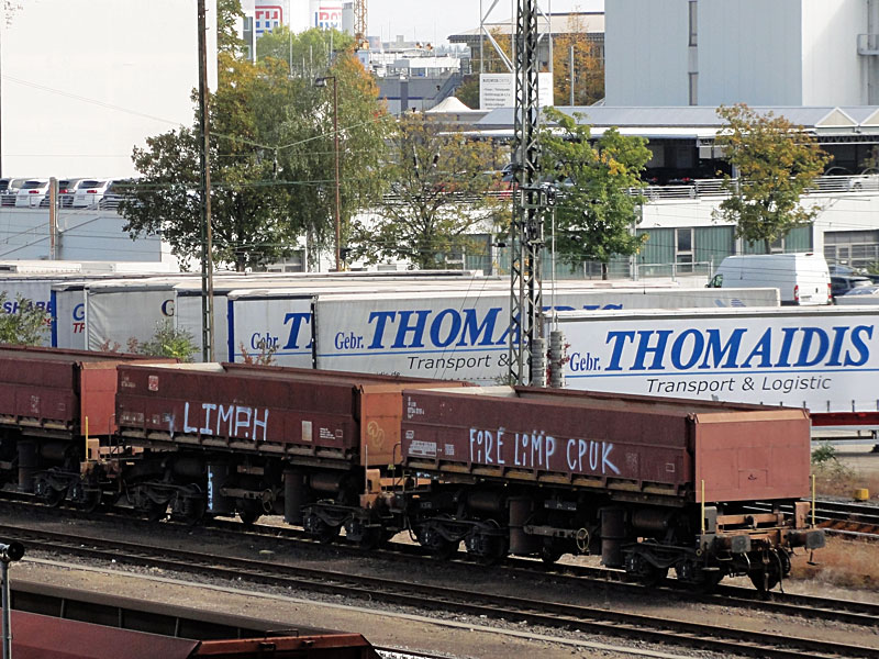 Im Osten Frankfurts waren mal wieder einige Güterzüge zu sehen, die eine gratis Oberflächenlackierung spendiert bekamen.