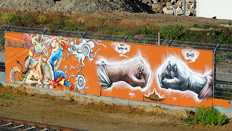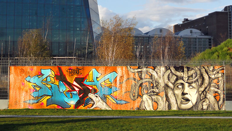 Von Anfang Oktober bis Anfang Dezember sind an der Freiluftgalerie am EZB-Neubau wieder zahlreiche neue Graffitikunstwerke entstanden, und 20 Fotos davon gibt es nun hier zu sehen.
