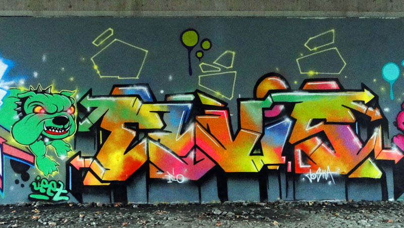 An der Friedensbrücke wurde nun auch die Wandfläche bemalt, die direkt an der Straße liegt.