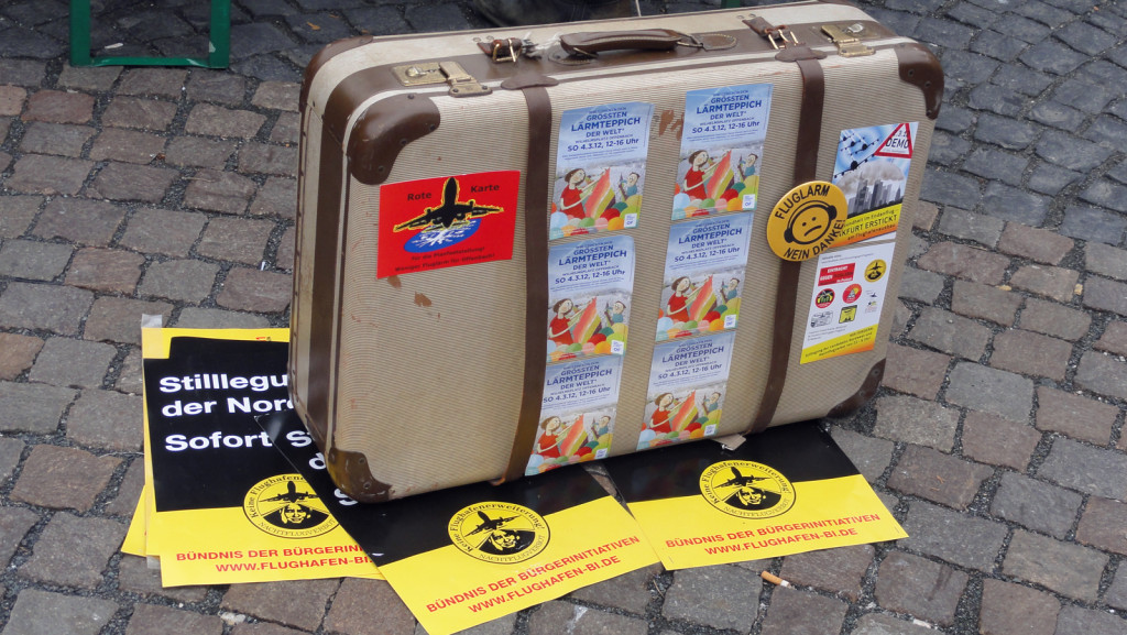 Schönes Patchwork, auch wenn sich mir die Verbindung zum Fluglärm nicht wirklich erschließt. Waren die meisten Leute nicht eher da, um an der Teppichaktion teilzunehmen? Was wird jetzt damit gemacht? Hoffentlich an einem symbolisch zur Aktion Lärmbelästigung passender Ort plaziert.