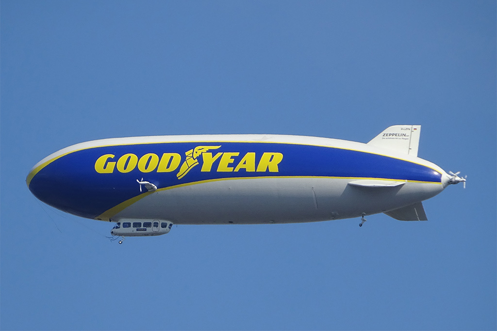 „Nach fast einem Jahrzehnt ist wieder ein Goodyear-Luftschiff am Himmel über Europa zu sehen. Für Goodyear ist der sogenannte „Blimp“ eine Ikone […] Das aktuelle Luftschiff mit Goodyear-Branding ist ein Zeppelin NT, der von der Deutschen Zeppelin-Reederei GmbH mit Sitz in Friedrichshafen betrieben wird.“ (www.goodyear.eu)