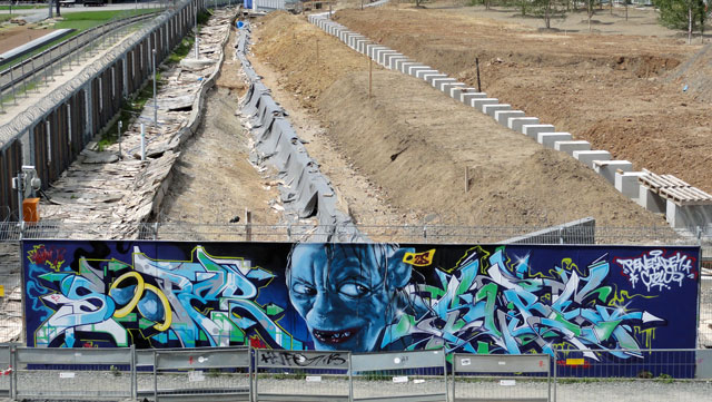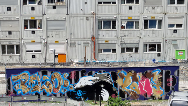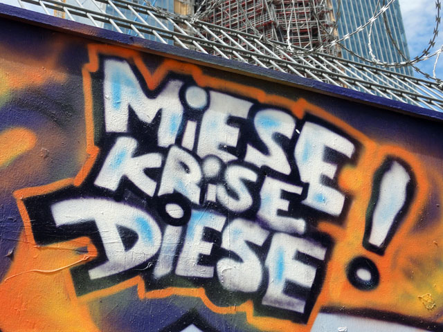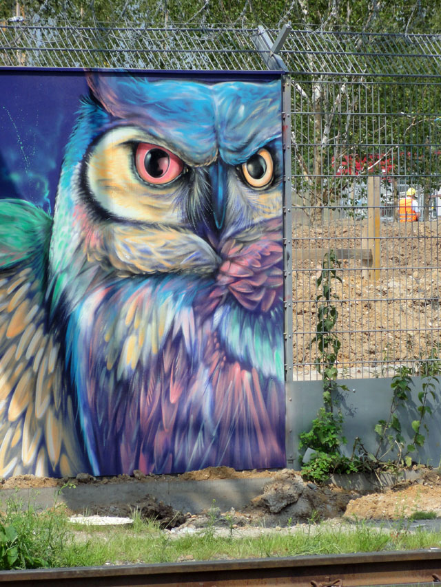 Anlässlich der „Nacht der Museen“ wurden die Wände entlang des Bauzauns der EZB-Baustelle erneut bemalt. Zäune, Dauer-Matsch und enge Wegführung gehören nun hoffentlich der Vergangenheit an, sodass man vor Ort auch mal wieder halbwegs normal Fotos machen kann. Here we go: