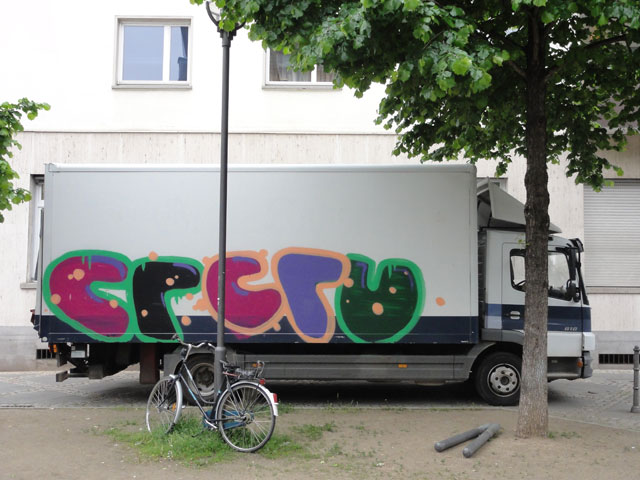 Ich könnte mir gut vorstellen, dass nur im Falle des Obst & Gemüse-Transporters von PYC beide Seiten, Besitzer des Fahrzeugs und Maler, mit dem Resultat zufrieden sind. Bei den Werken auf den anderen neun Fotos vermag ich das zumindest nicht zu beurteilen. Die sind vielleicht nicht immer schön, aber dafür (fast) immer bunt. Ist ja eigentlich auch nicht verkehrt, gibt es doch auf den Straßen genug (unbesprühte) Exemplare die so aussehen, als hätten sie schon seit Ewigkeiten keinen Waschanlage mehr von innen gesehen.