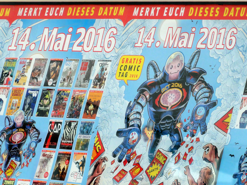 Am kommenden Samstag, 14. Mai 2016, findet zum siebten Mal der Gratis Comic Tag statt. 300 Comichändler der D-A-CH-Region halten an diesem Tag 34 verschiedene Comics parat, die eigens für diesen Tag produziert wurden. Darüber hinaus veranstalten viele Händler auch Signierstunden mit Comickünstlern, Ausstellungen, Wettbewerbe oder auch Zeichenkurse.