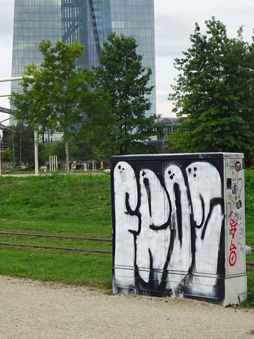 Sie fungieren als Zwischenlager für die Post, können aber auch Steuerungseinheiten von Ampeln und öffentlichen Verkehrsmitteln sowie Steuerungselemente von Fernseh-, Internet- und Telefonleitungen enthalten. Die Rede ist von den grauen Kästen, die überall in der Stadt zu sehen sind. Von diesem grau ist in der Regel nicht mehr viel übrig, denn je nach Standort sind sie nicht nur eine beliebte Fläche für gerahmte Werbeplakate, sondern auch für Aufkleber, Tags und Graffiti. Um die mit Graffiti soll es an dieser Stelle gehen, und zwar in Form von 11 Fotos, die zwischen 2017 und 2020 in Frankfurt am Main aufgenommen wurden.