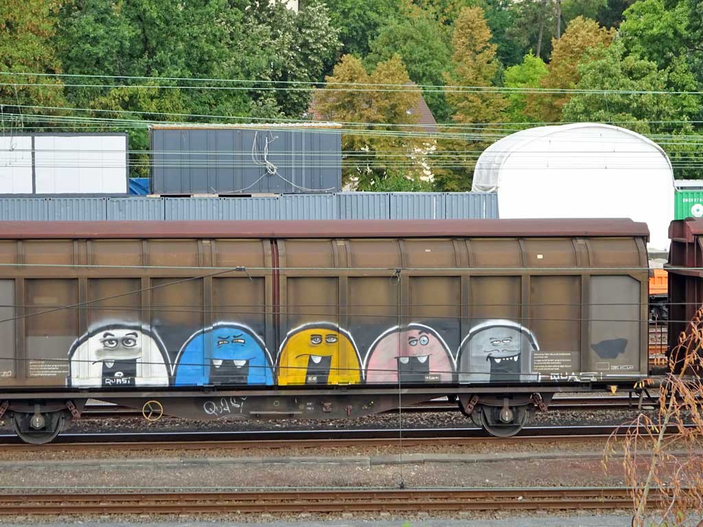 Sie befördern die unterschiedlichsten Sendungen von A nach B, aber auch als Wanderausstellung für Graffiti-Kunst erfreuen sie sich großer Beliebtheit: Güterzüge. Als beliebter Schauplatz für eine Präsentationsform dieser Art, hat sich in der Vergangenheit besonders der Frankfurter Osten hervorgetan, dort waren derlei Shows schon des Öfteren zu beobachten. Die Aufnahmen der nachfolgenden Züge bzw. Wagen sind in den vergangenen sechs Monaten entstanden.