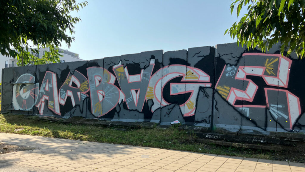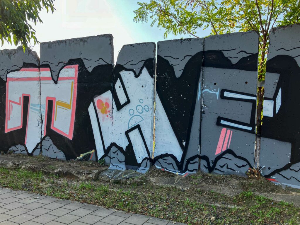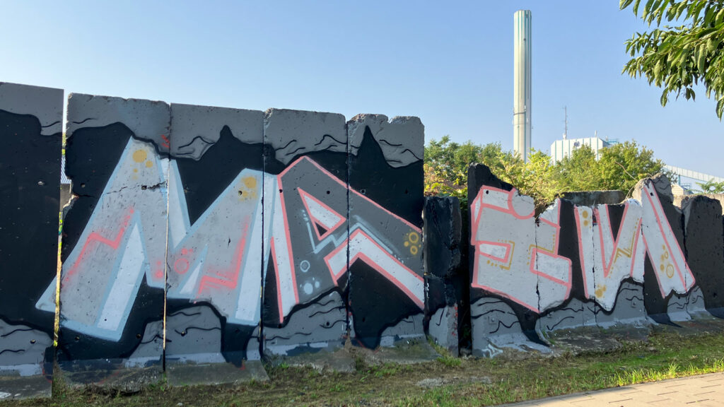 Laut dem „Newsletter ‚Kultur in Offenbach‘ September 2024“ war im Rahmen des Riviera-Festivals eine Graffiti-Jam am Hafengarten vorgesehen. Fotos oder weitere Infos dazu habe ich zwar keine finden können, aber kurz nach dem Event sah es vor Ort wie folgt aus:
