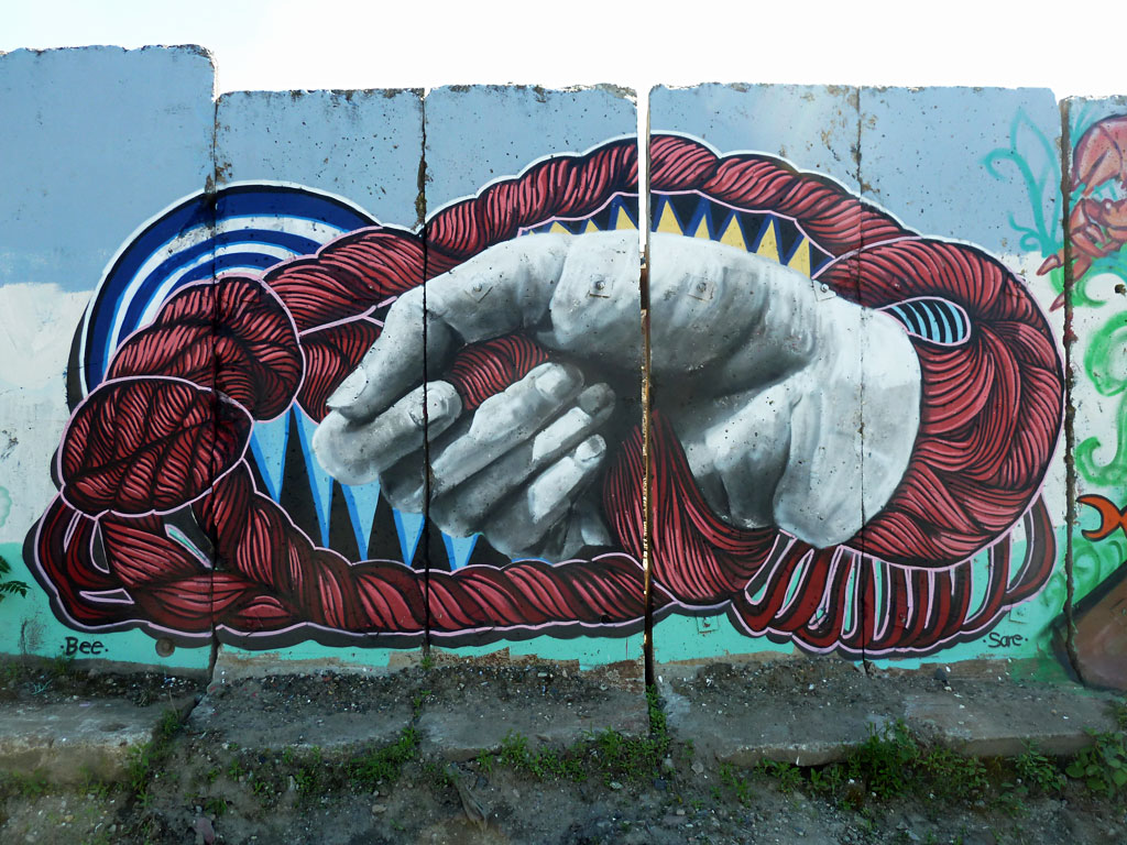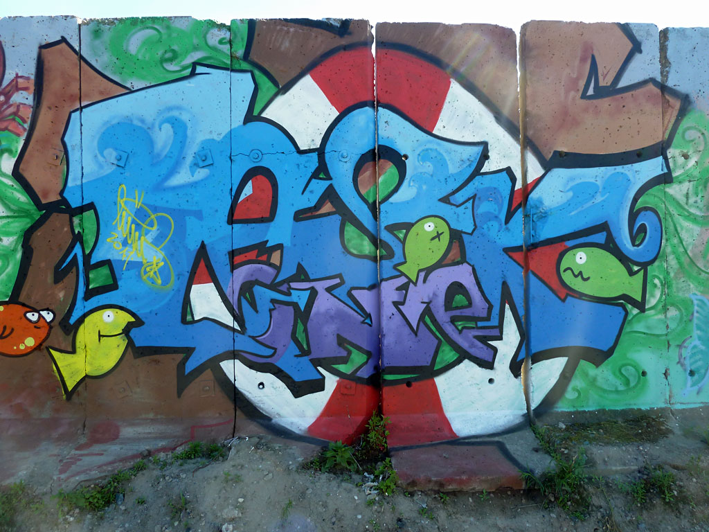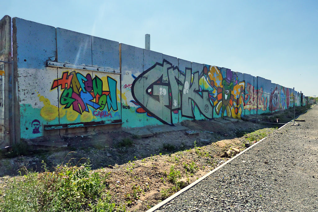 In Offenbach wurden die Mauern entlang des Hafengartens mit Sprühdosenkunst umgestaltet.