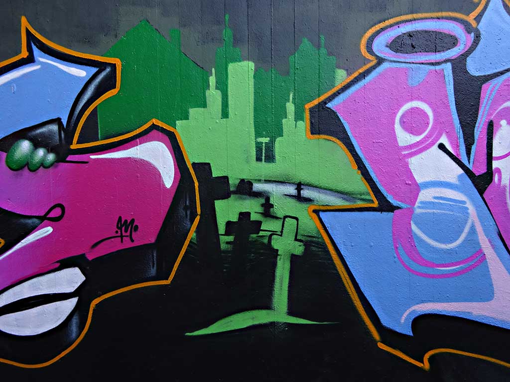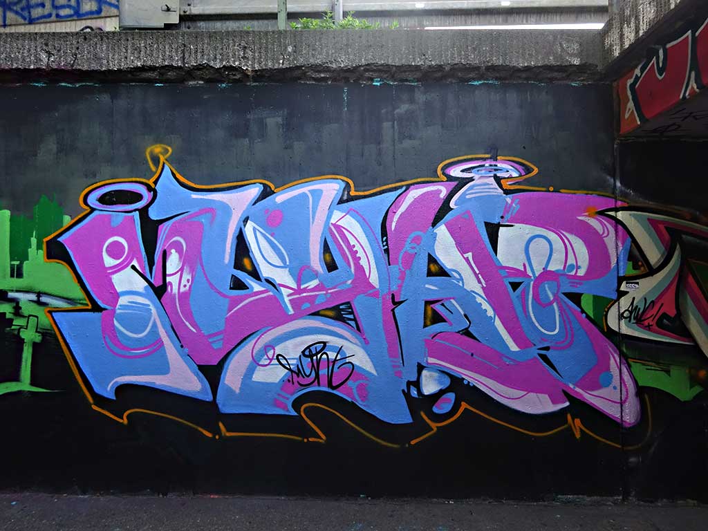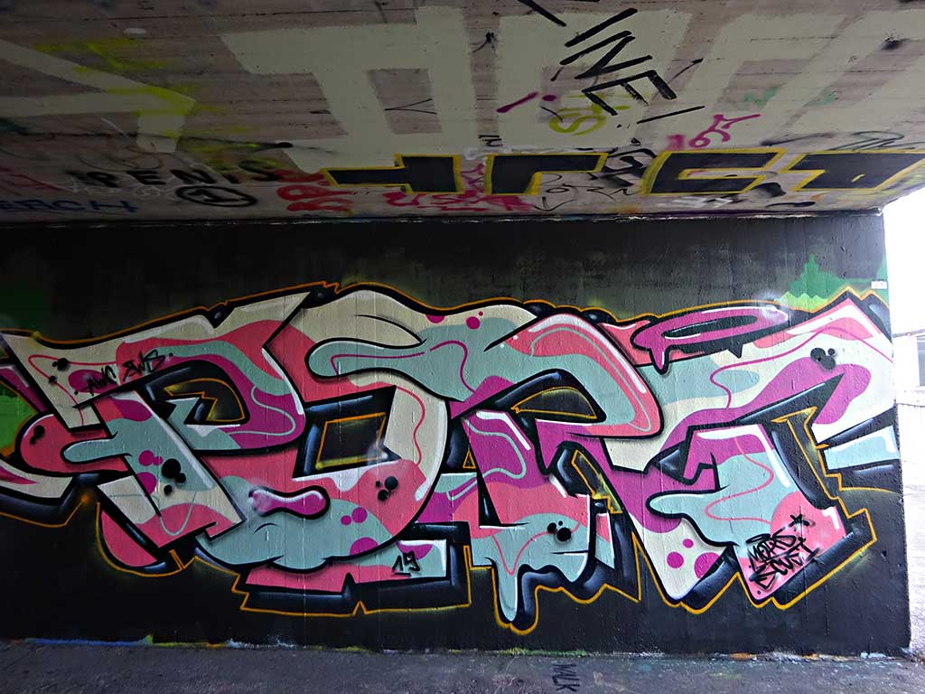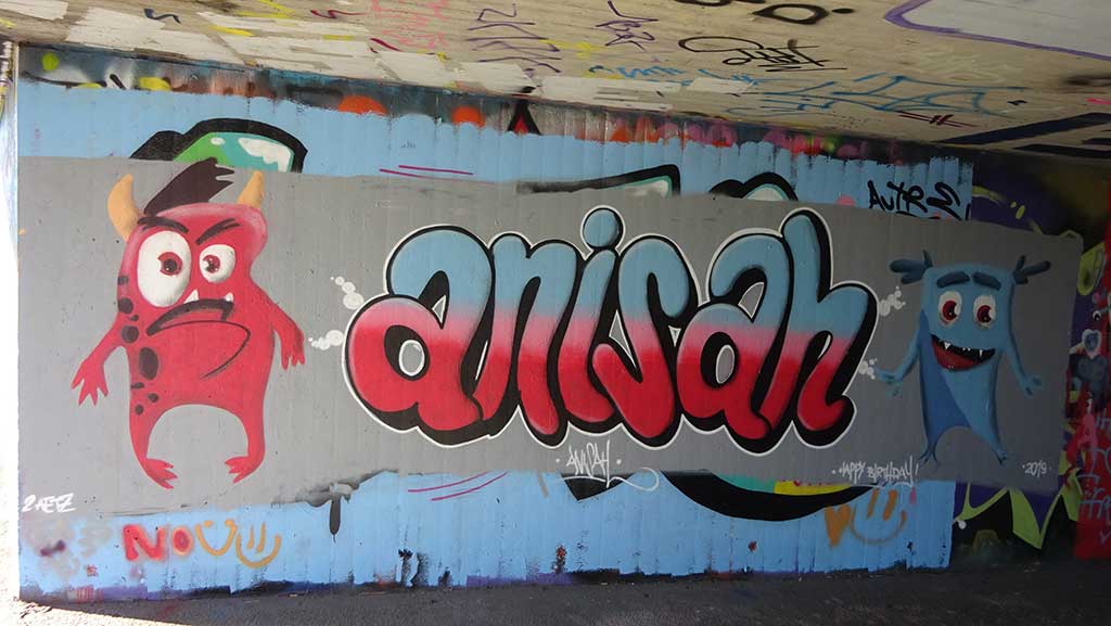 Im Juni waren an der Hall of Fame am Ratswegkreisel relativ wenige Character zu vernehmen, es dominierte ein kunterbuntes Buchstabenallerlei.