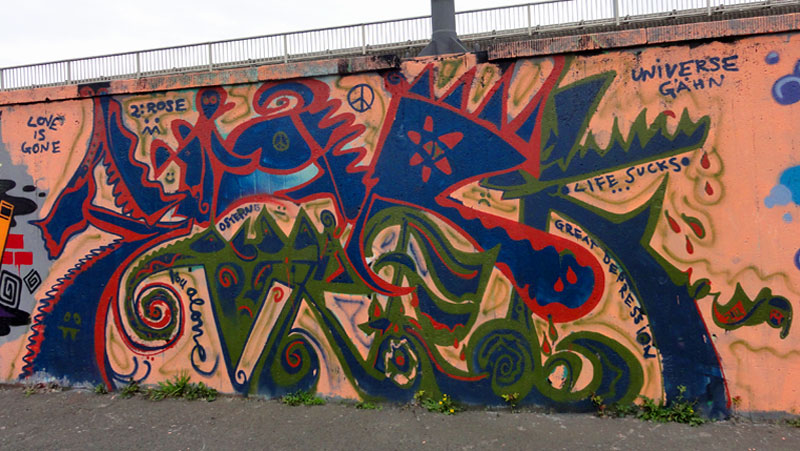 70 Fotos mit Sprühwerken von der Hall of Fame am Ratswegkreisel in Frankfurt am Main.