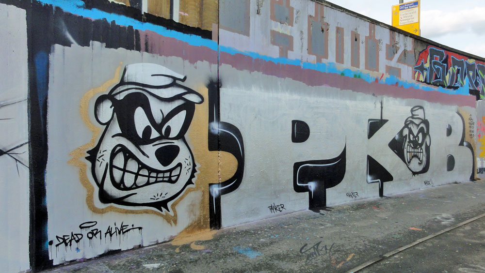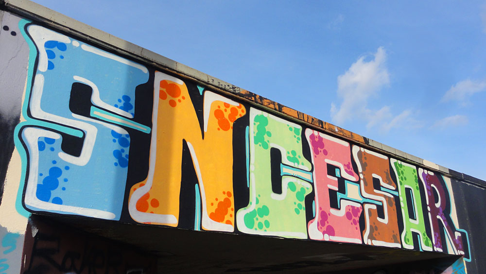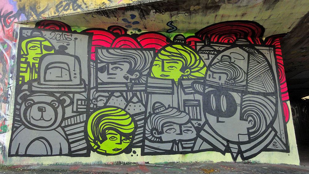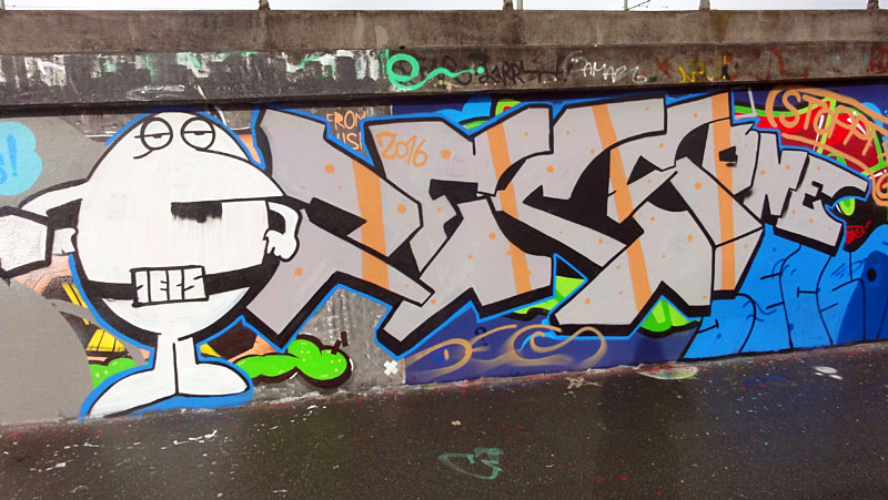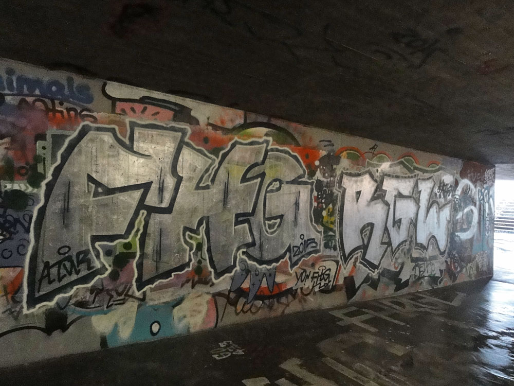 Ca. 100 Graffiti-Fotos von der Hall Of Fame am Ratswegkreisel in Frankfurt, aufgenommen im Januar 2016.