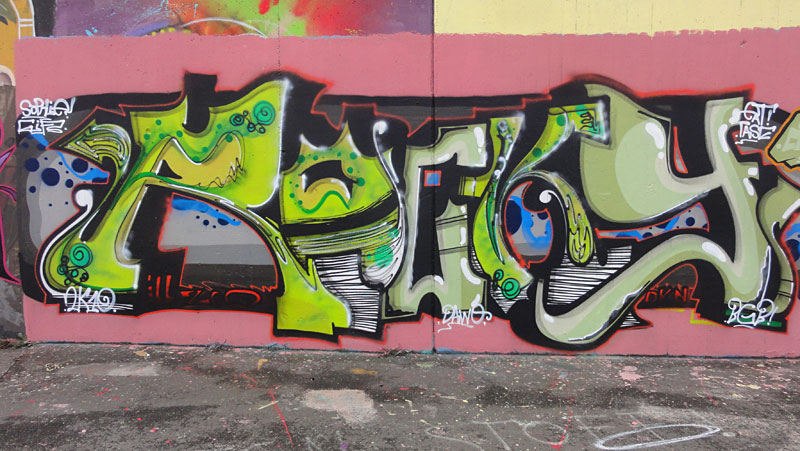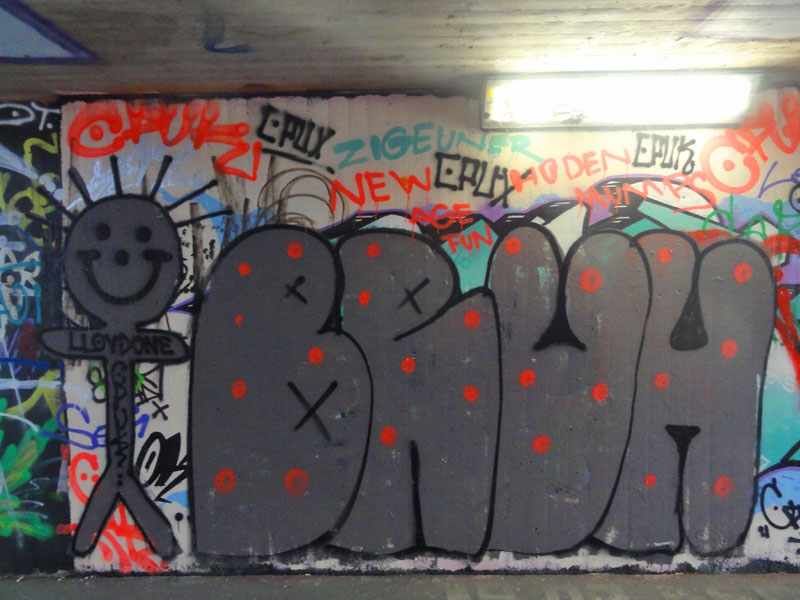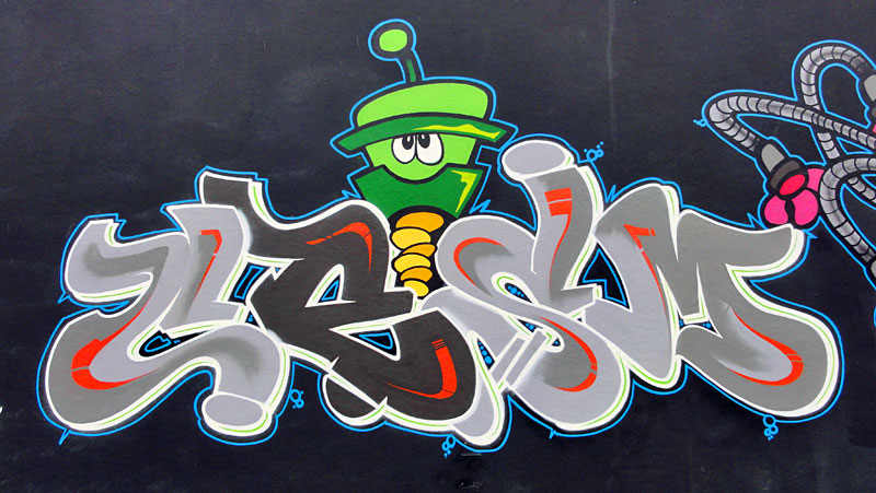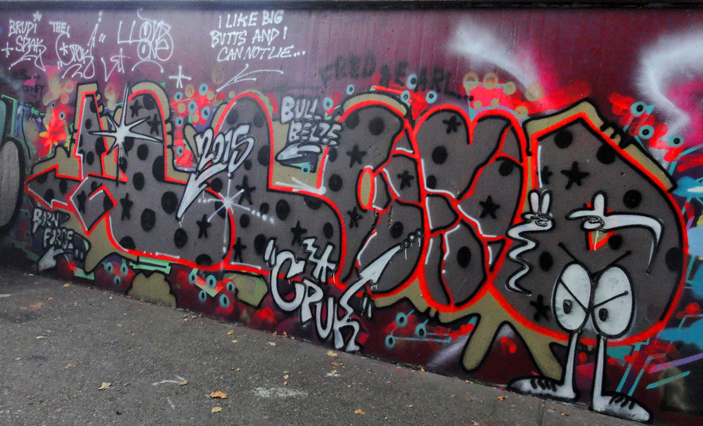 Zwischen dem anhaltenden Hupen des motorisierten Verkehrs auf der Kreuzung der Haunauer Landstraße und dem nicht abreißen wollenden Klingeln der vorbeirasenden Radfahrer, wurde auch im Oktober wieder rund um die Unterführung am Ratswegkreisel fleißig gemalt.