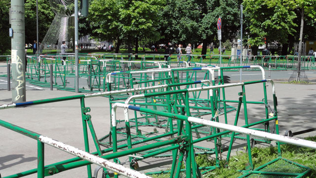 Hinter Gittern: Erste Bilder zu den Absperrungen in der Stadt anlässlich der Blockupy-Aktionstage 2013 in Frankfurt