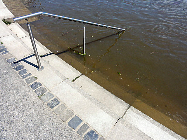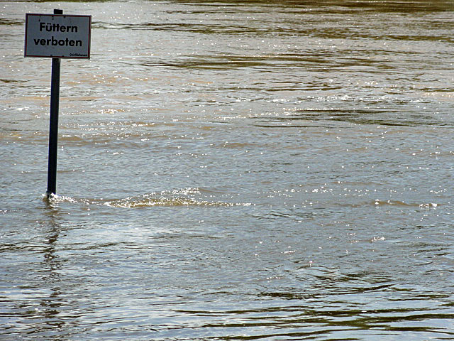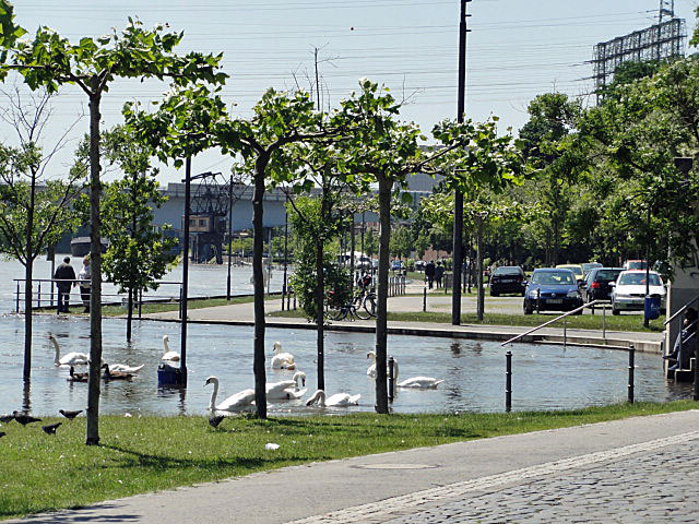 Auch am Mainufer in Frankfurt-Höchst kann man derzeit einige Auswirkungen der Hochwasserlage in Deutschland beobachten. Ähnlich wie am das Hochwasser in Frankfurt am östlichen Mainufer hält sich das aber glücklicherweise alles noch in Grenzen.