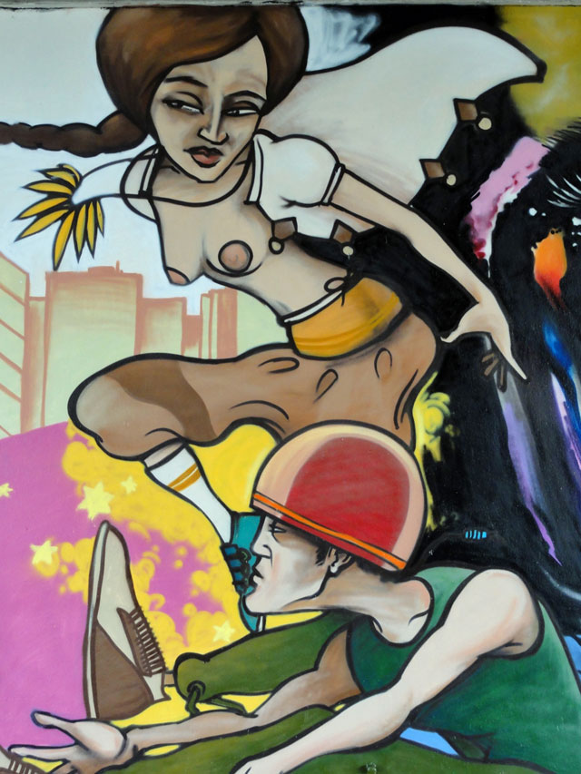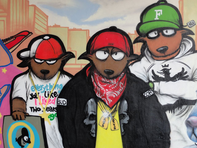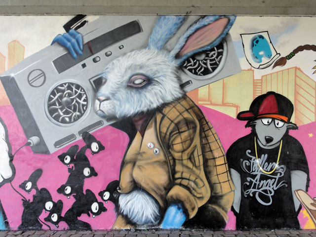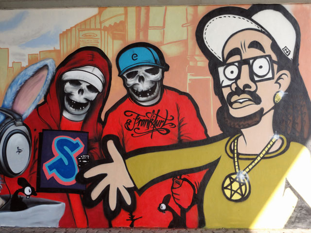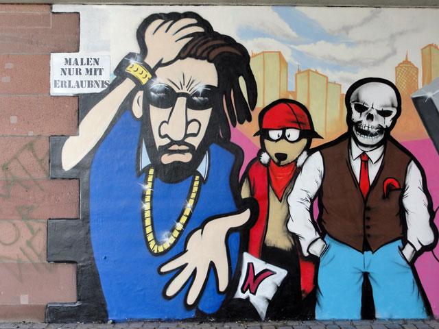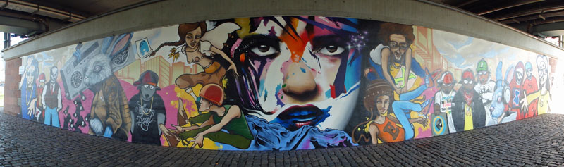 Bei frühlingshaften Temperaturen kamen viele Menschen am Mainufer zusammen, davon vielleicht sogar deutlich mehr mit Fotokameras als mit Sprühdosen. Hier einige Eindrücke von einer der vier neu bemalten Wänden. [Hihi, einer der abgebildeten Character trägt ein Shirt, dass ich auch besitze. Sachen gibt’s.]