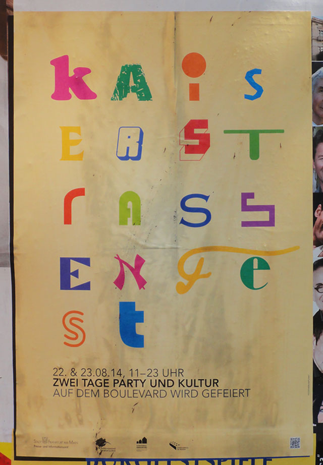 In genau zwei Wochen, am 22. und 23. August 2014, lädt der Vereinsring Bahnhofs- und Gutleutviertel e.V. von 11.00 bis 23.00 Uhr zum diesjährigen Kaiserstraßenfest ein. In den Tagen nach der Bahnhofsviertelnacht stellen sich der Stadtteil und seine Verbände und Initiativen vor. Neben zahlreichen Ständen, Speis & Trank und Musik gibt es auch wieder das interreligiöse Friedensgebet mit 5 Vertretern verschiedener Religionen. Dieses findet am Freitag um 17.30 Uhr auf der Bühne in der Kaiserstraße/ Ecke Elbestraße statt.